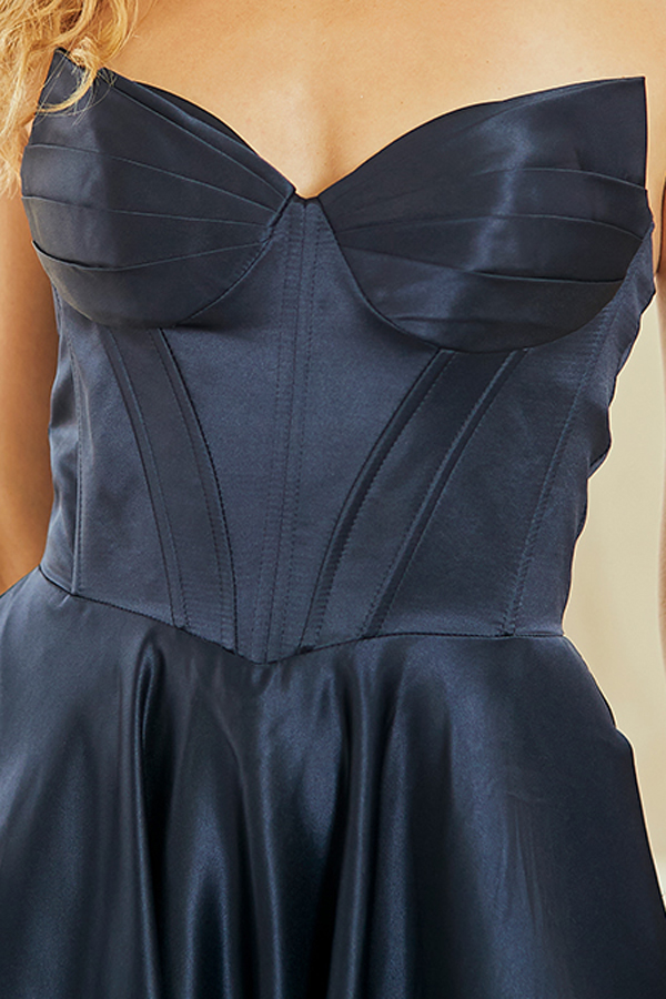Color: NAVY Size:- Strapless Solid Satin A Line Gown