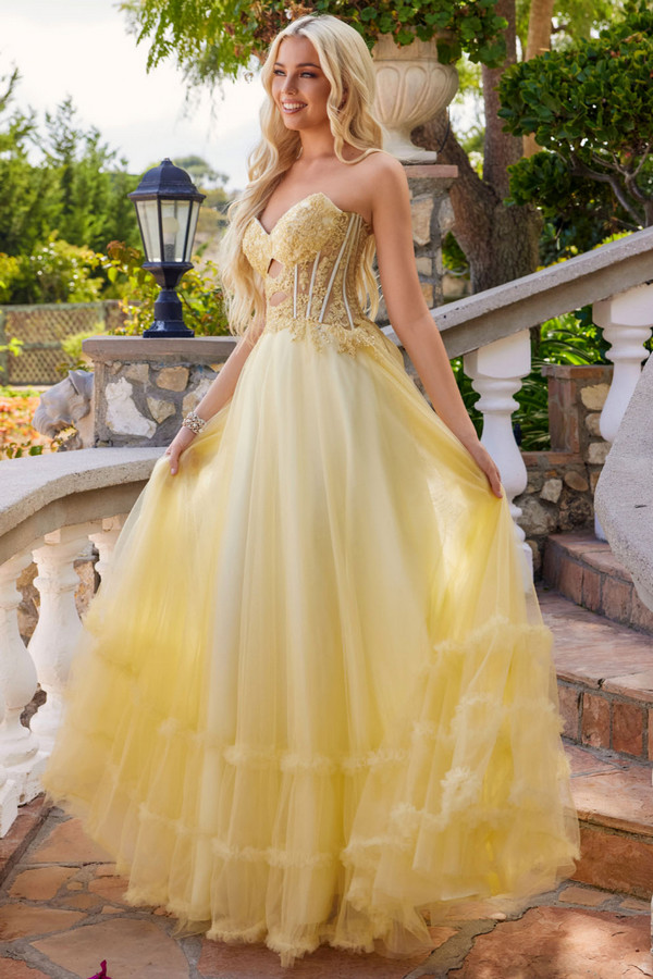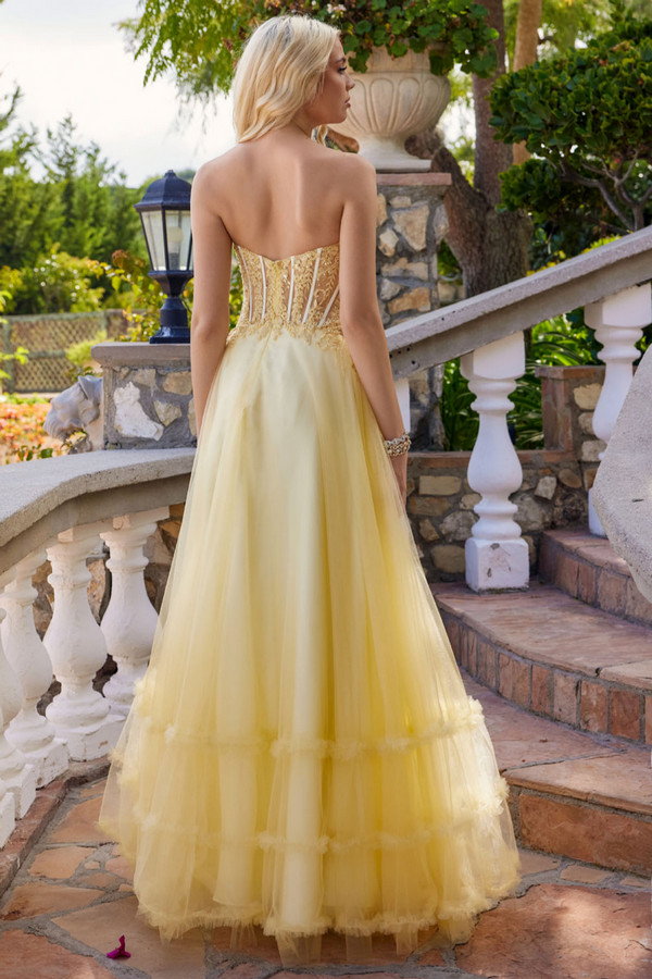 Strapless Sweetheart Lace Top A Line Dress.