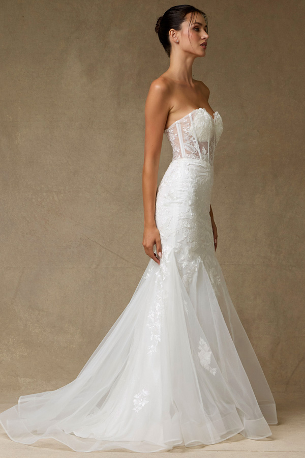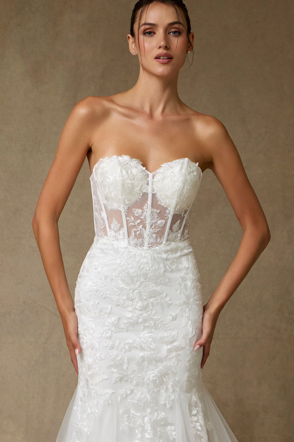 Wedding Gown w/ Strapless Fit and Flare Silhouette.