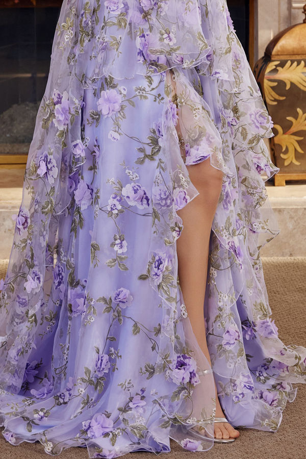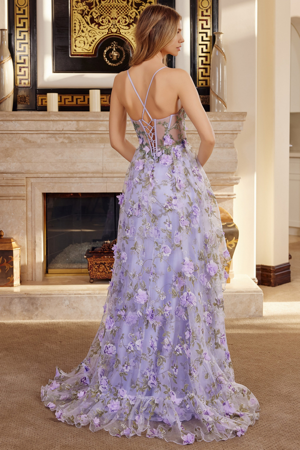 Color: LILAC Size:- 3D Floral Applique A Line Prom Dress