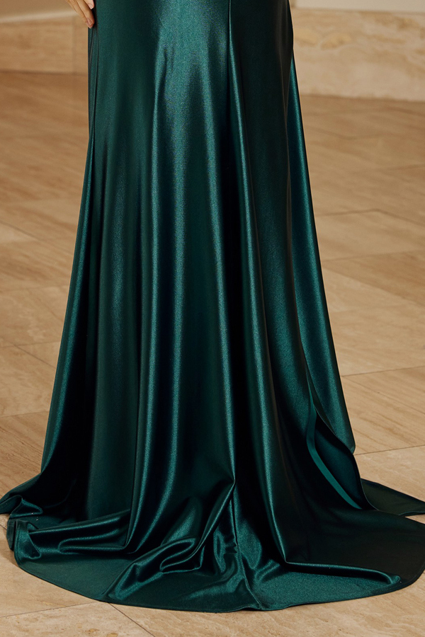 - Spaghetti Straps V Neckline Satin Evening Dress