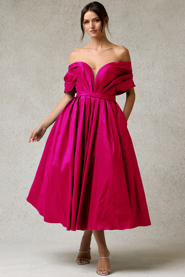 - Off the shoulder Sweetheart Taffeta Midi Dress