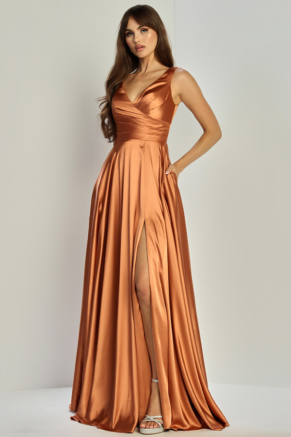 Color: SIENNA Size:- Pleated V neck Solid A Line Dress