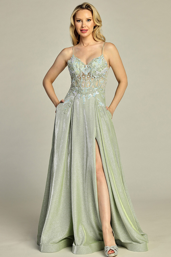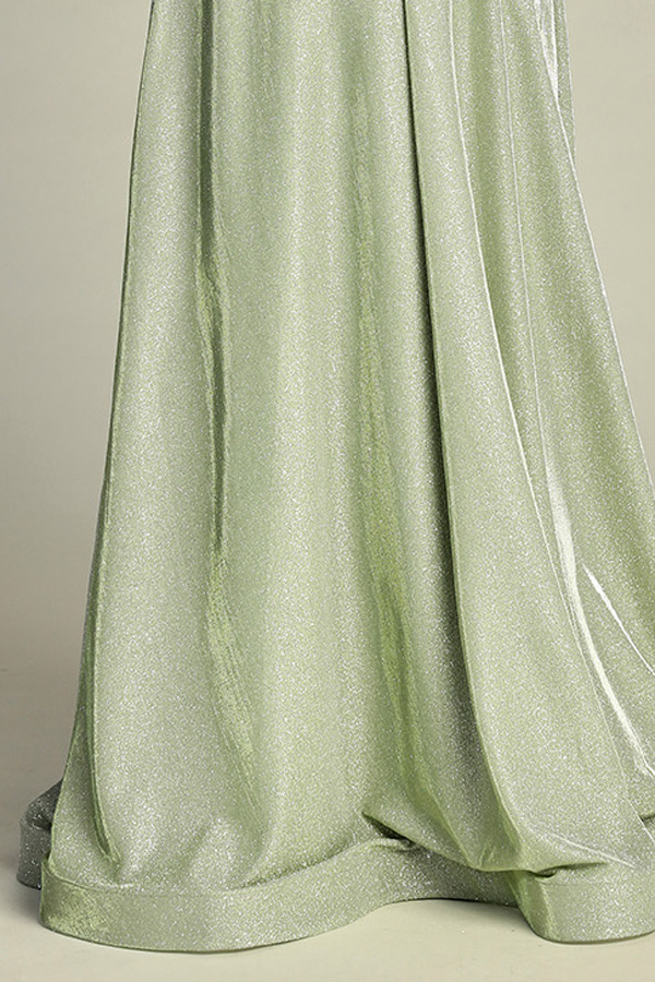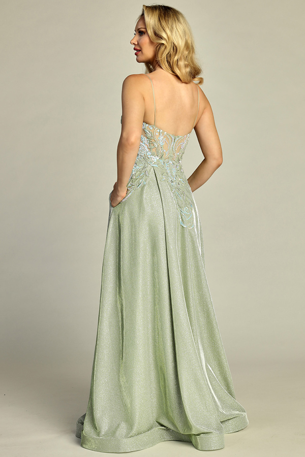 Sleeveless Sweetheart Top A Line Metallic Prom Gown.