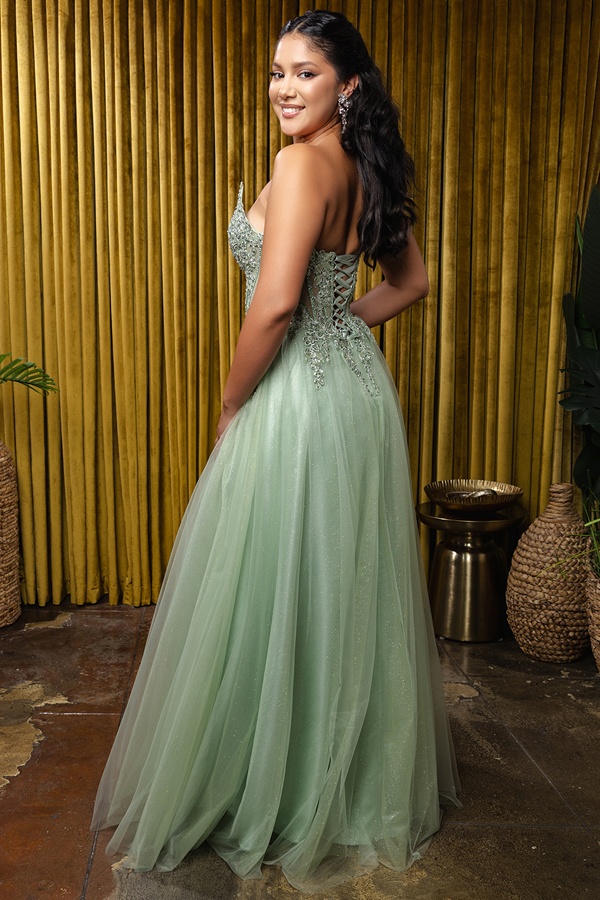 Color: SAGE Size:- Strapless V Neckline A Silhouette Dress