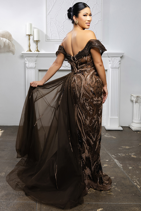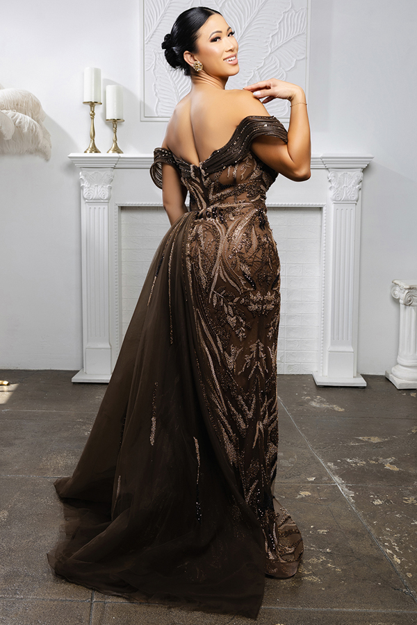 Features: Heavy Jewel Works, Bead Works, Embroidery, Thigh-High Slit, Sweep Train