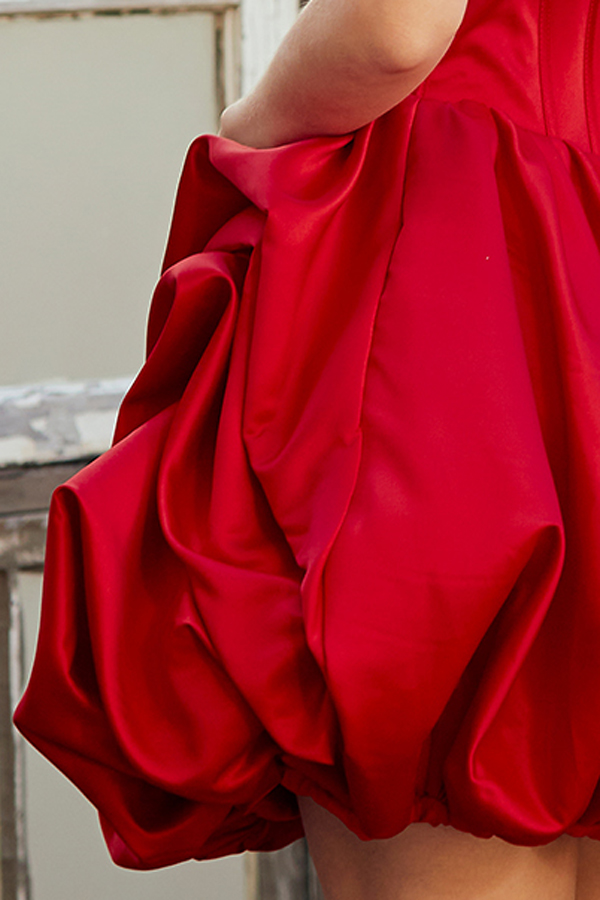 Color: RED Size:- Strapless Bateau Neckline Mini Bubble Dress