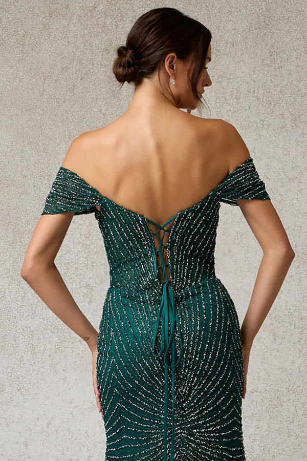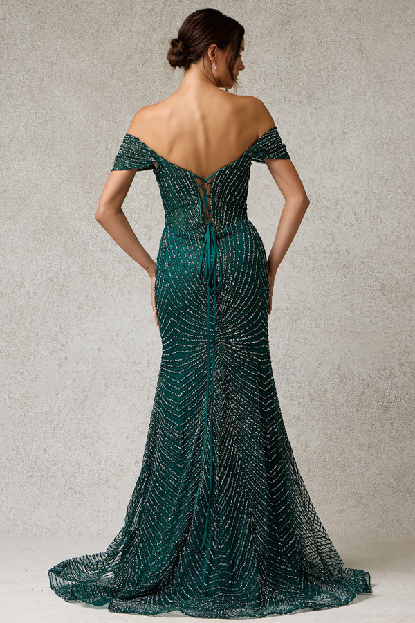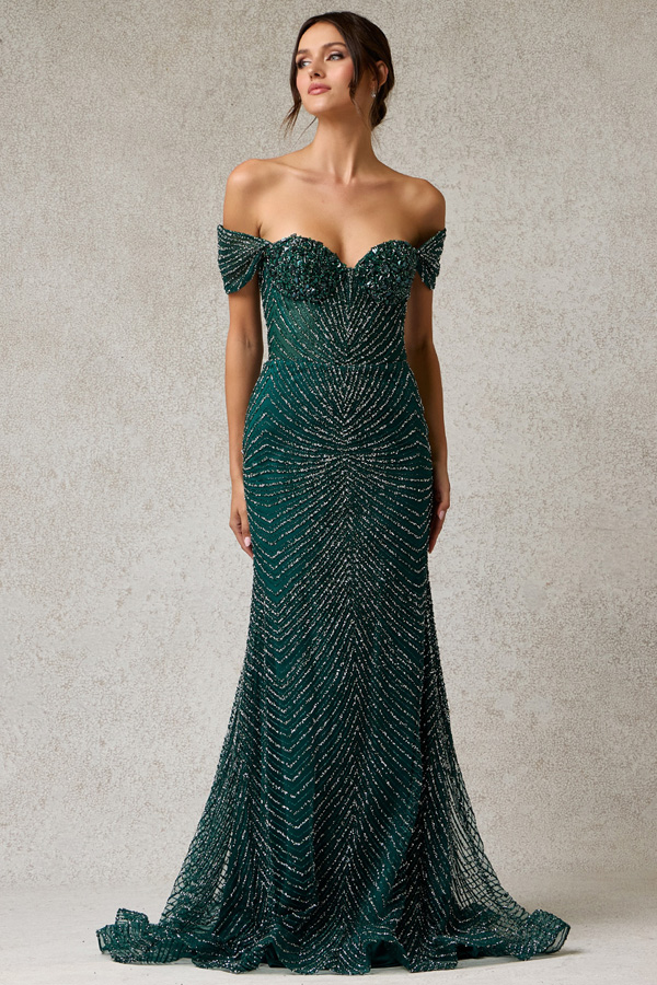 - Off Shoulder Sweetheart Bead Works Evening Dress