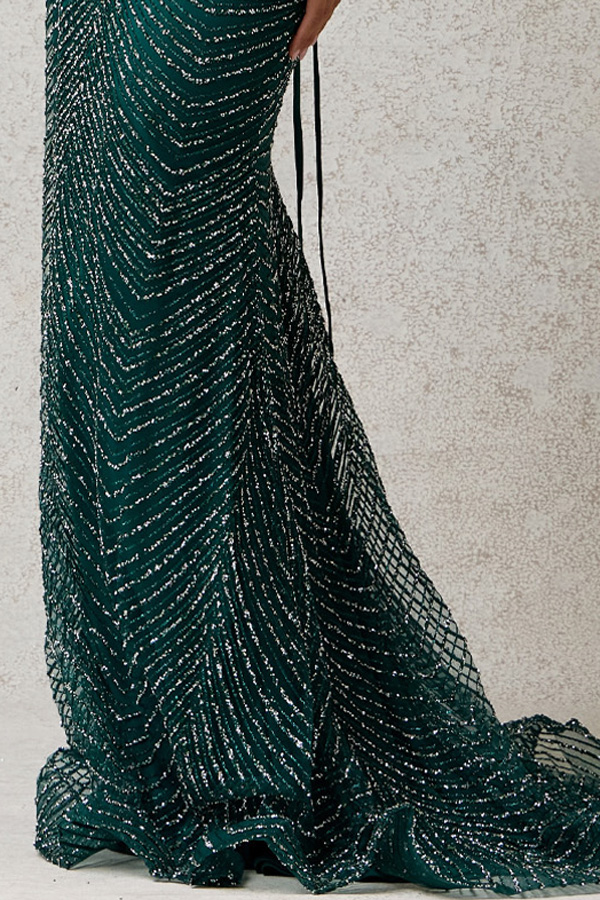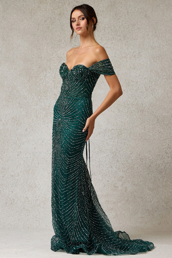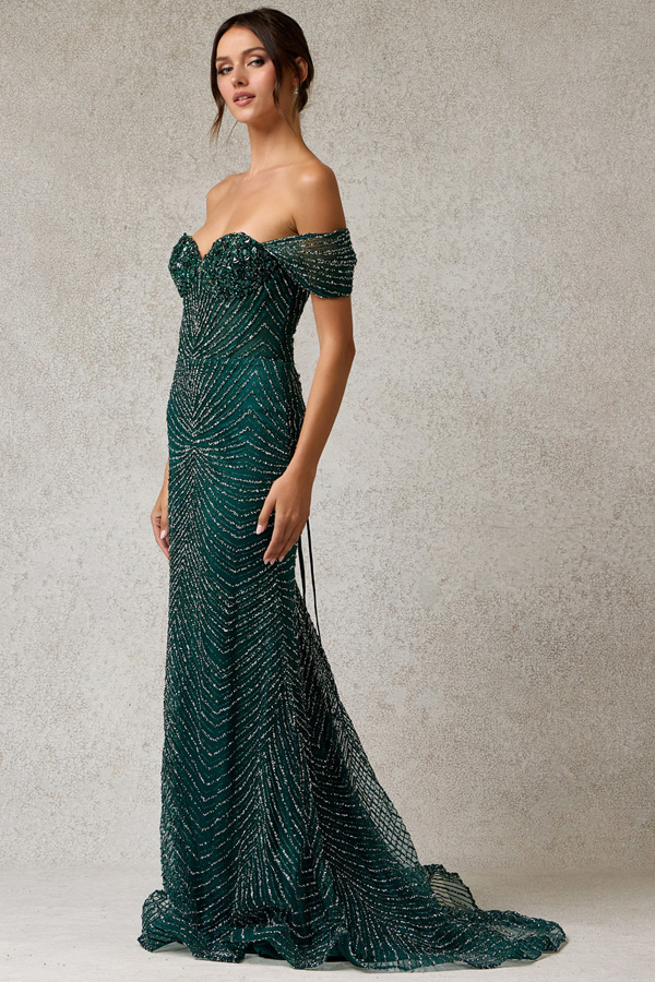 Off Shoulder Sweetheart Bead Works Evening Dress.
