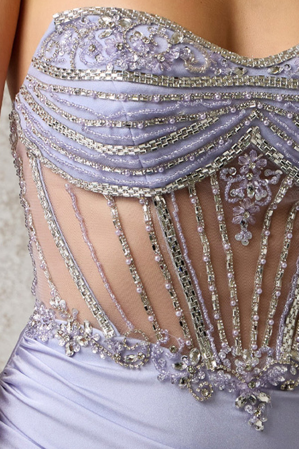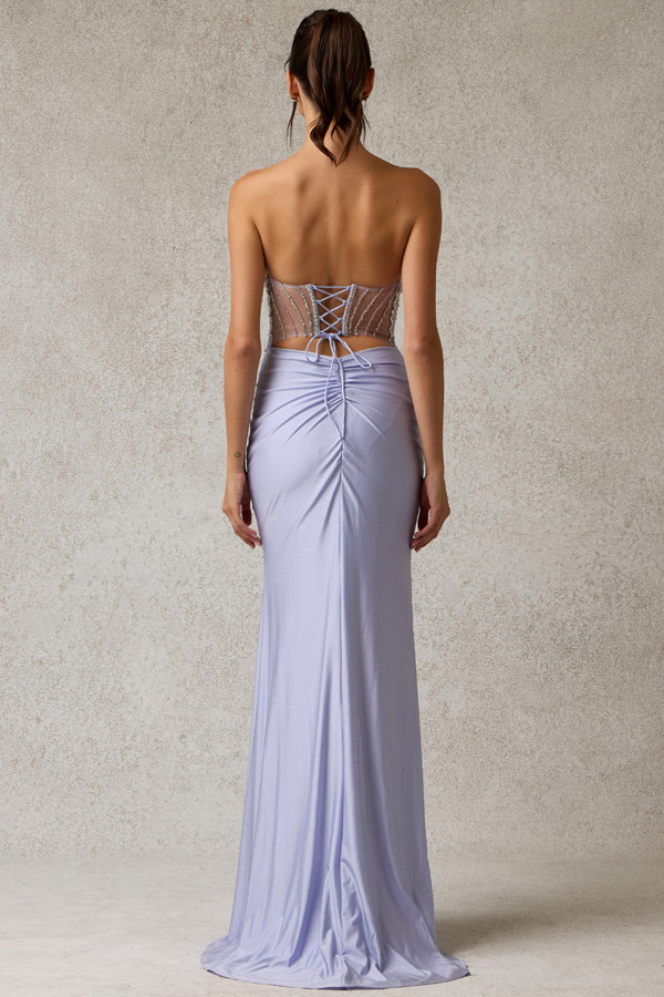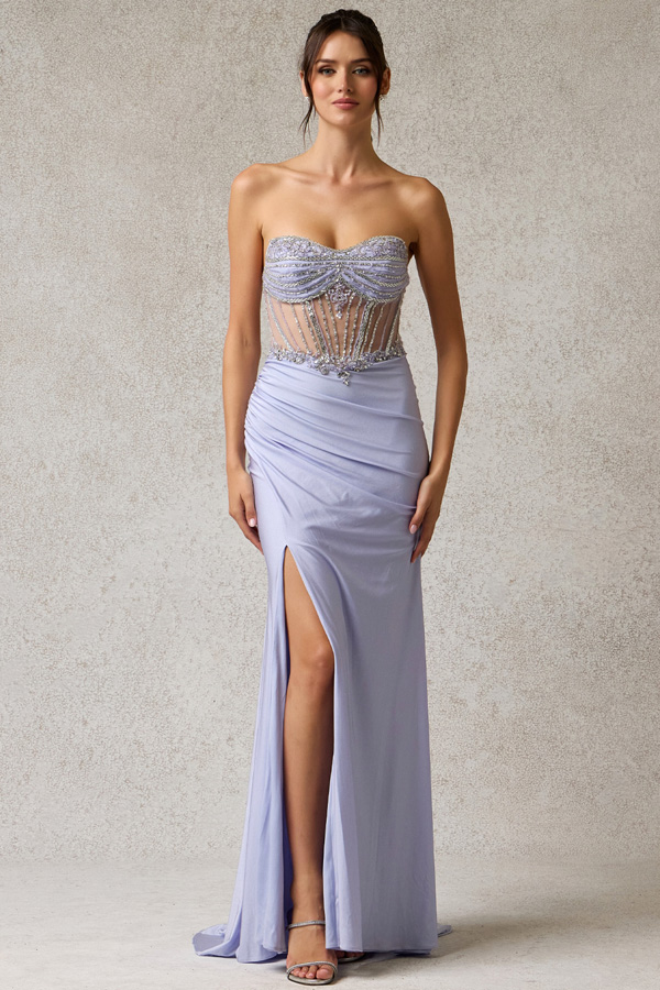 Strapless Embellished Illusion Top Sheath Dress.