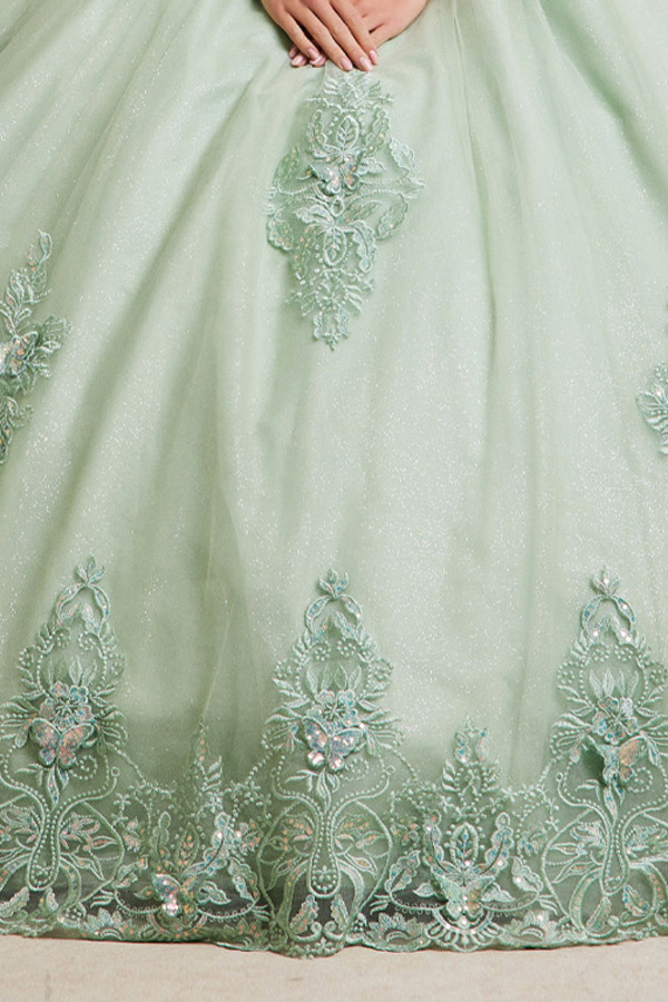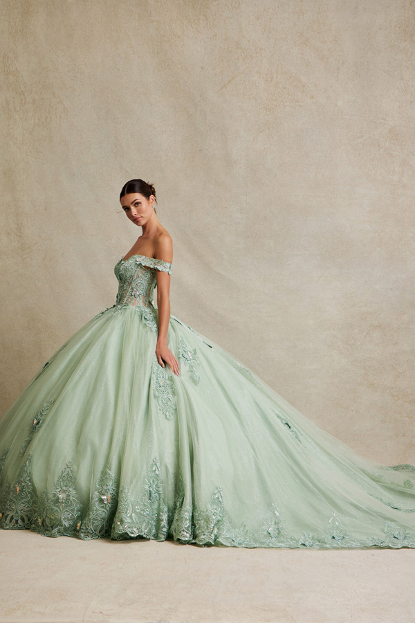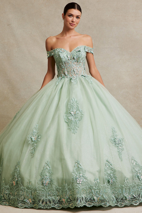 Off Shoulder Sweetheart 3D Butterfly Applique Quinceanera Ballgown.