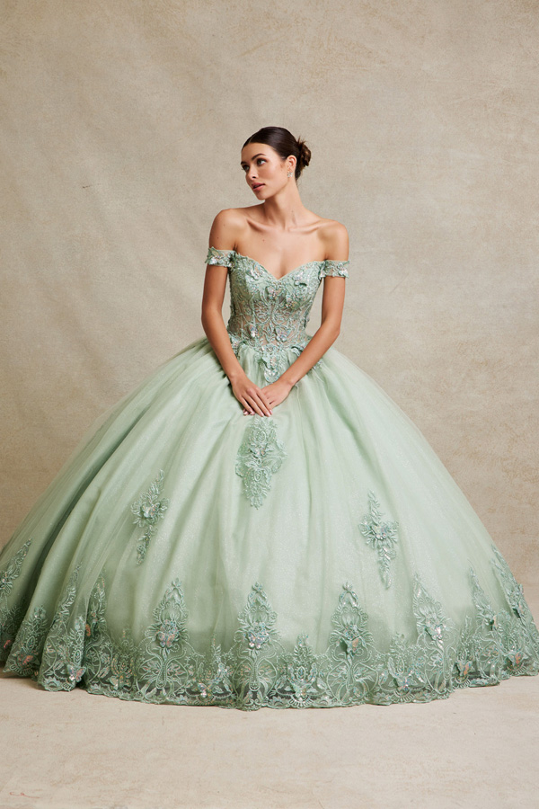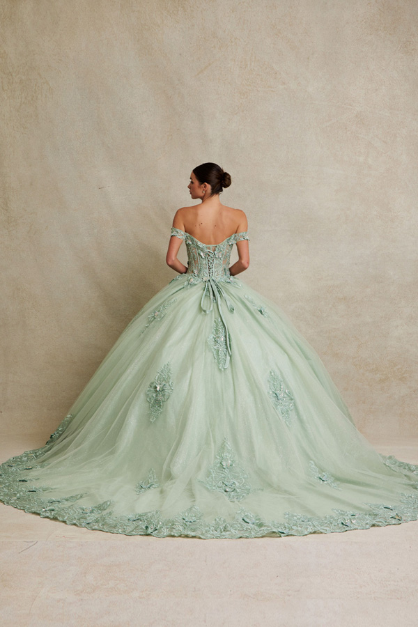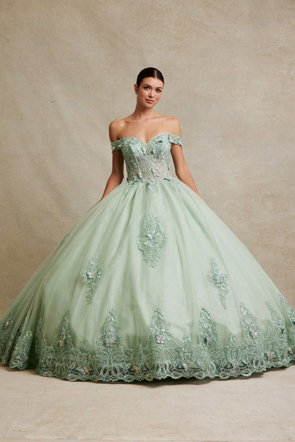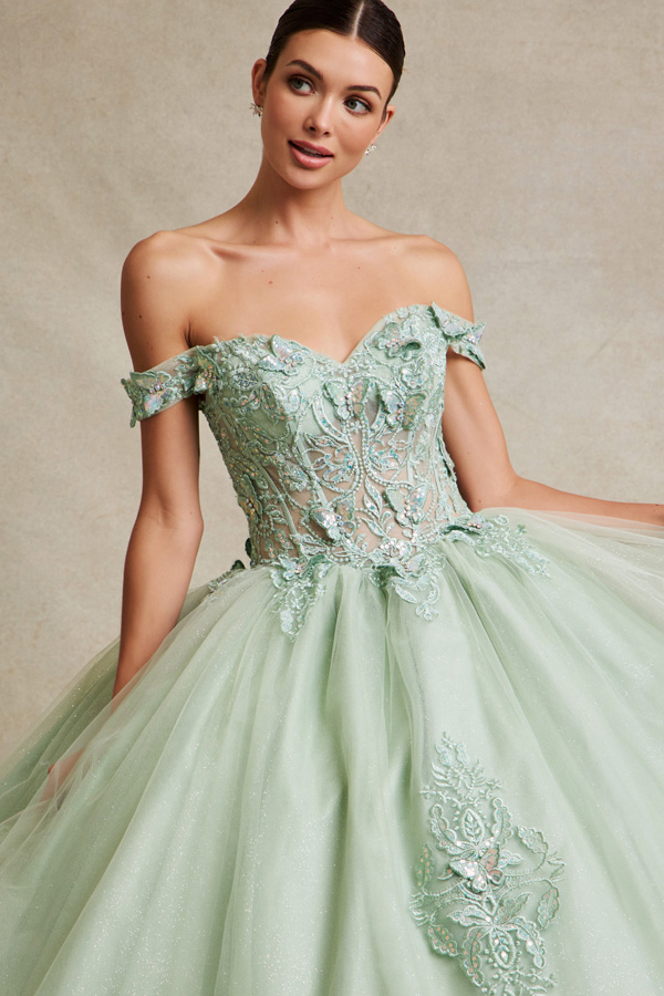- Off Shoulder Sweetheart Applique Quinceanera Dress
