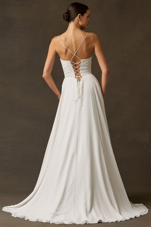Sleeveless Spaghetti Straps Sweetheart A Line Chiffon Bridal Gown.