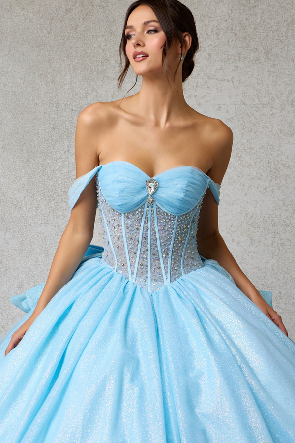 - Off Shoulder Sweetheart Illusion Top Quince Ball Gown