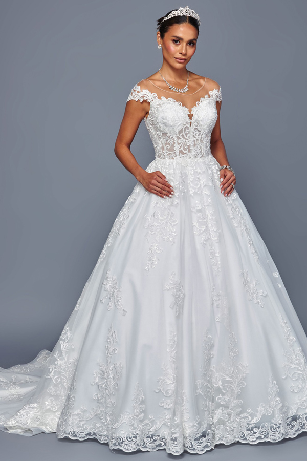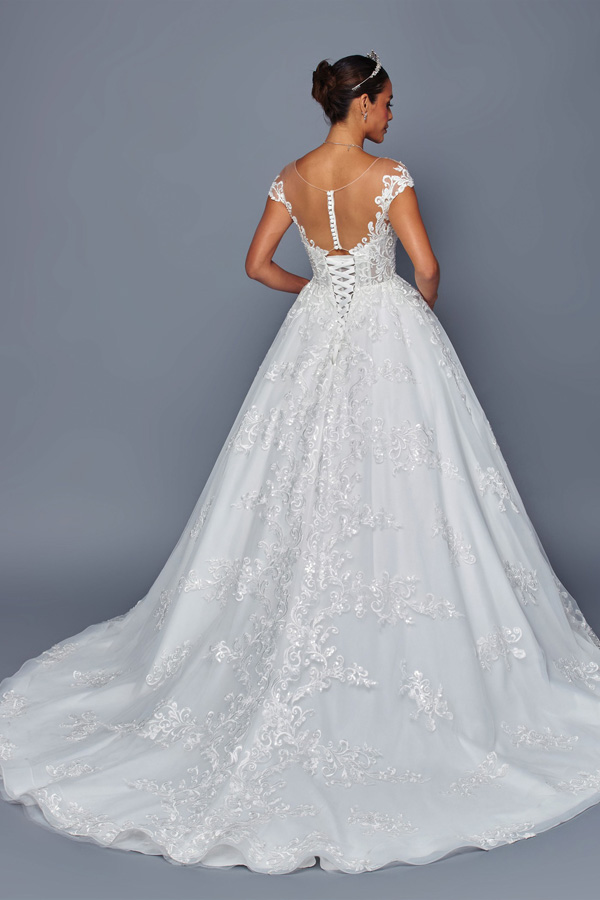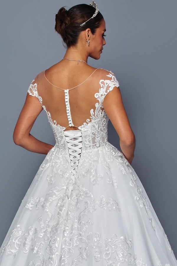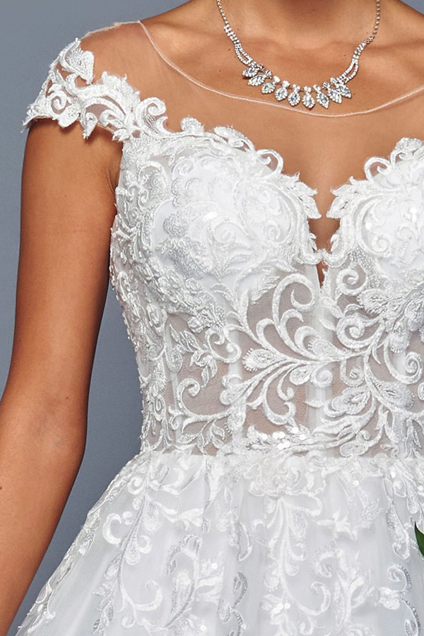 Illusion Wide Boat Neck Cap Sleeve A Line Wedding Dress.