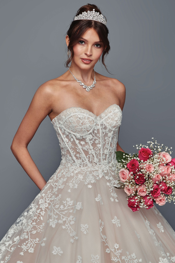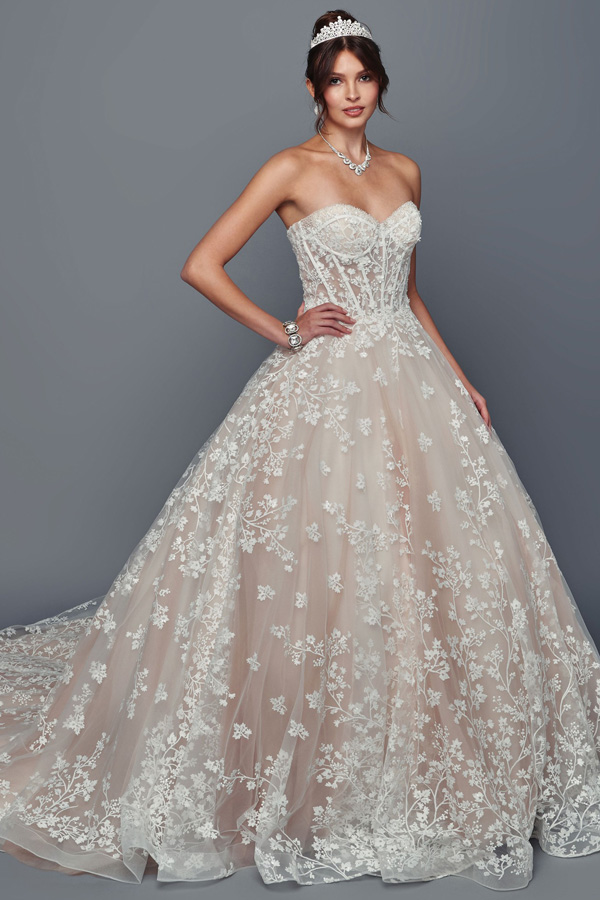 Color: CHAMPAGNE Size:- Strapless Sweetheart Neckl A Line Chapel Wedding Gown