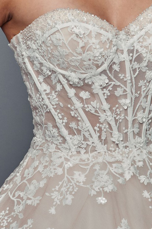 Features: Chapel Length, Pearl Bead/Lace/Sequin Applique, Open Back, Bustier Corset.
