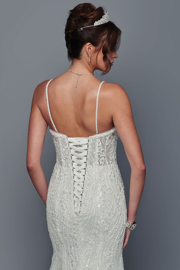 - Sleeveless Spaghetti Straps Lace Bead Work Wedding Gown