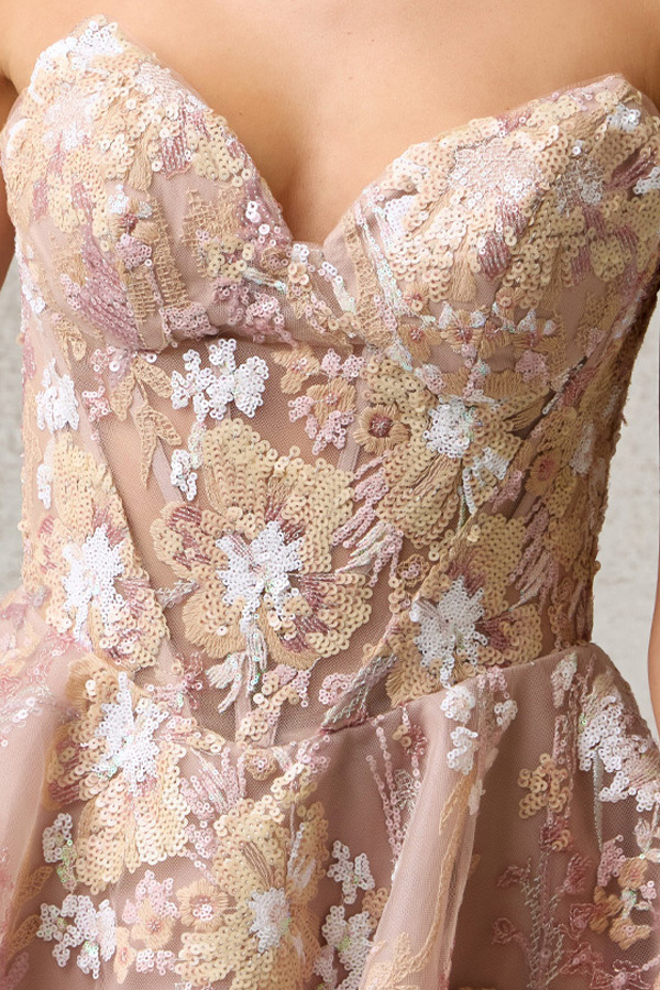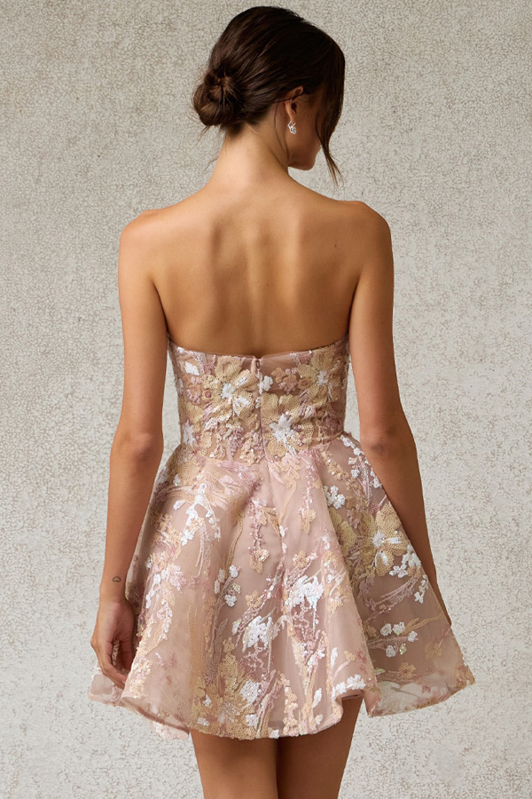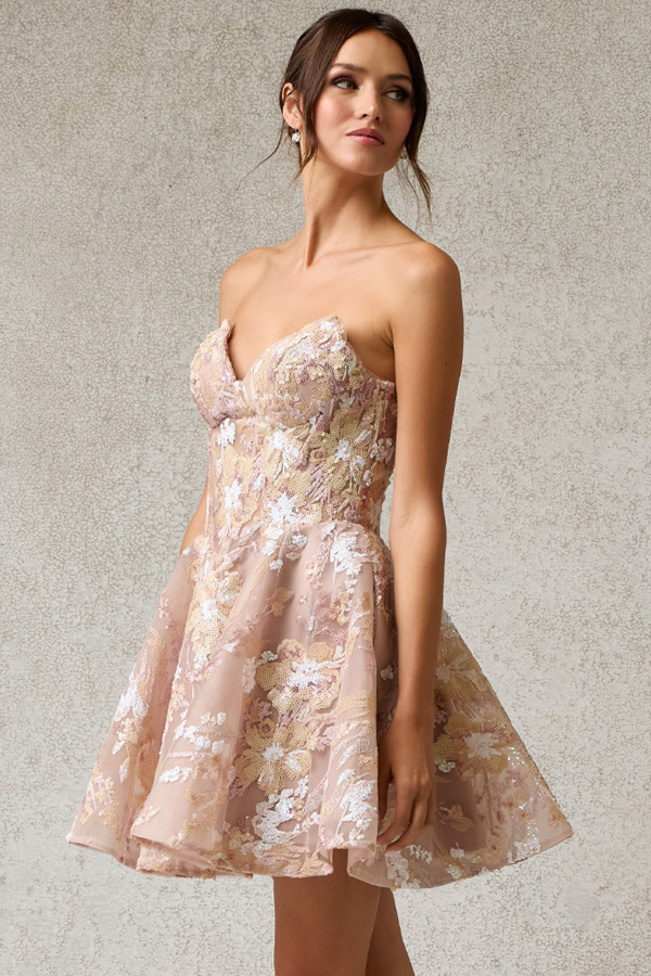 - Strapless Sweetheart Illusioin Top Cocktail Mini Dress