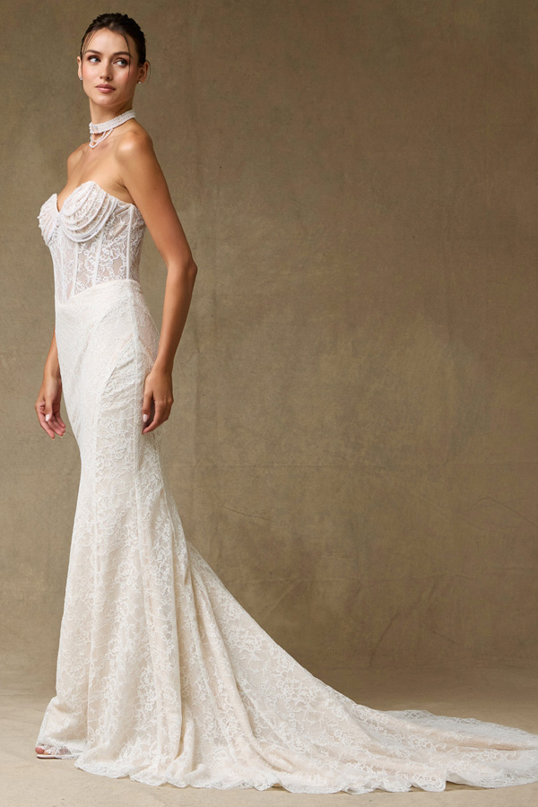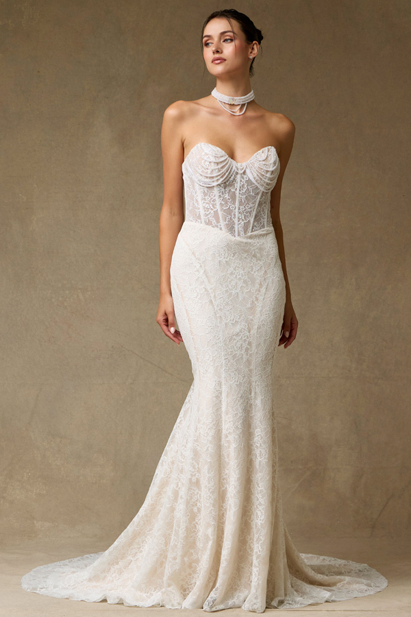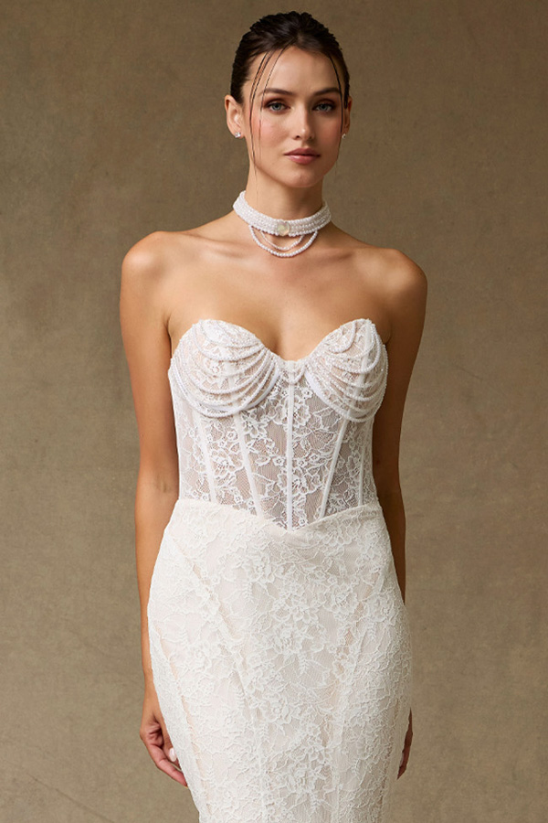 - Strapless Sweetheart Lace Mermaid Wedding Gown