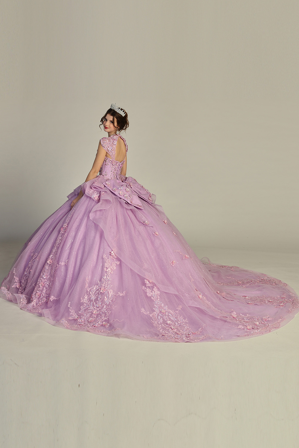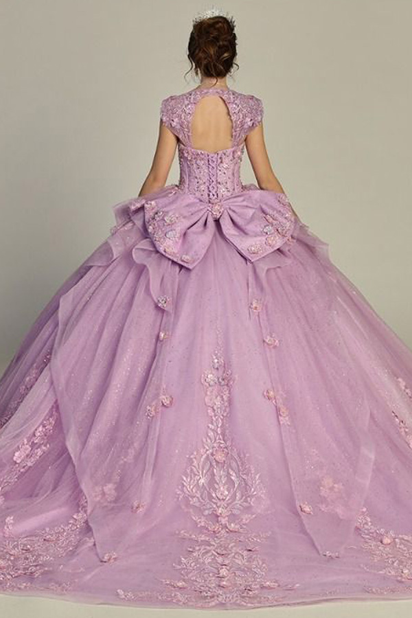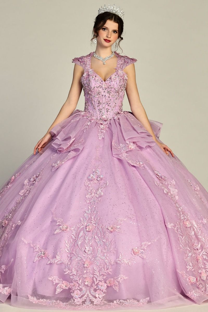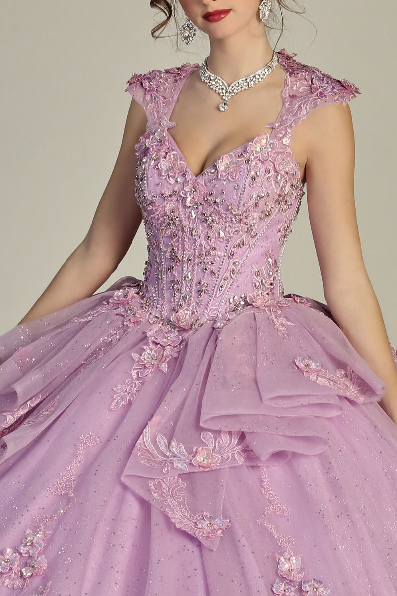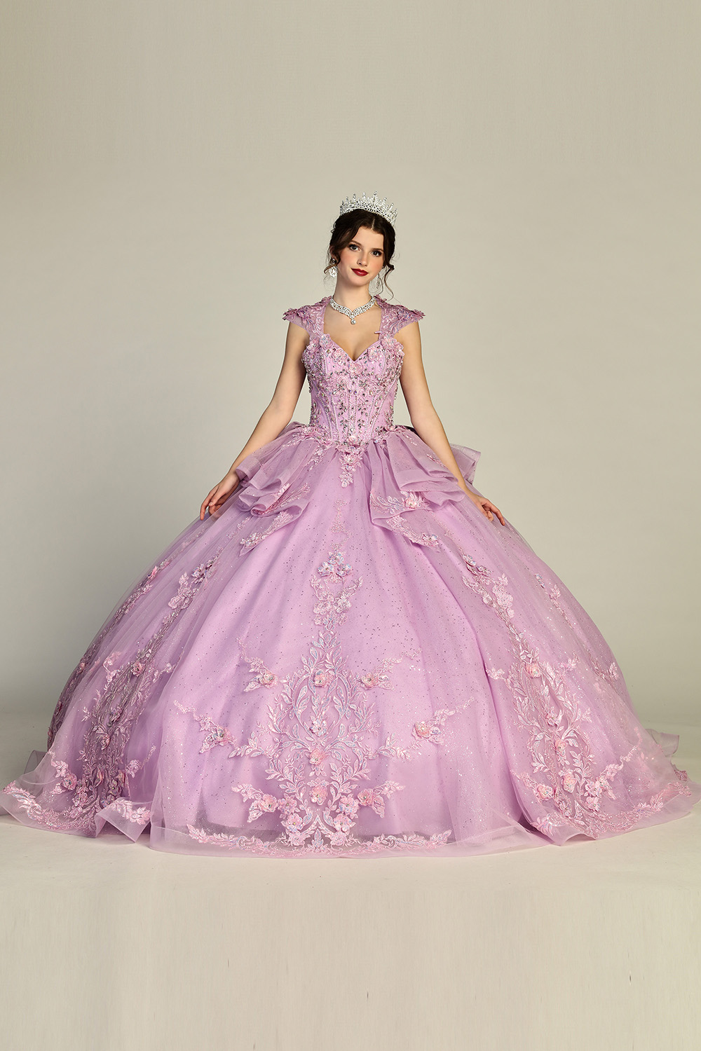 - Cap Sleeve Sweetheart Neck 3D Applique Quince Ball Gown