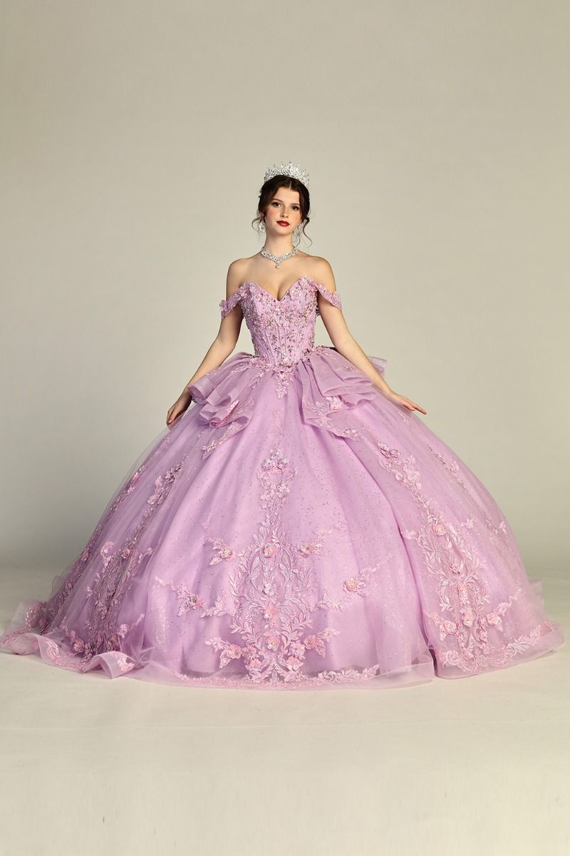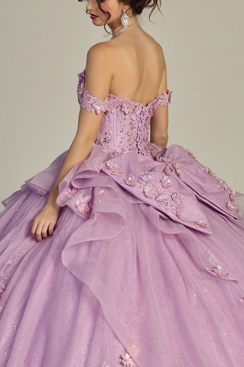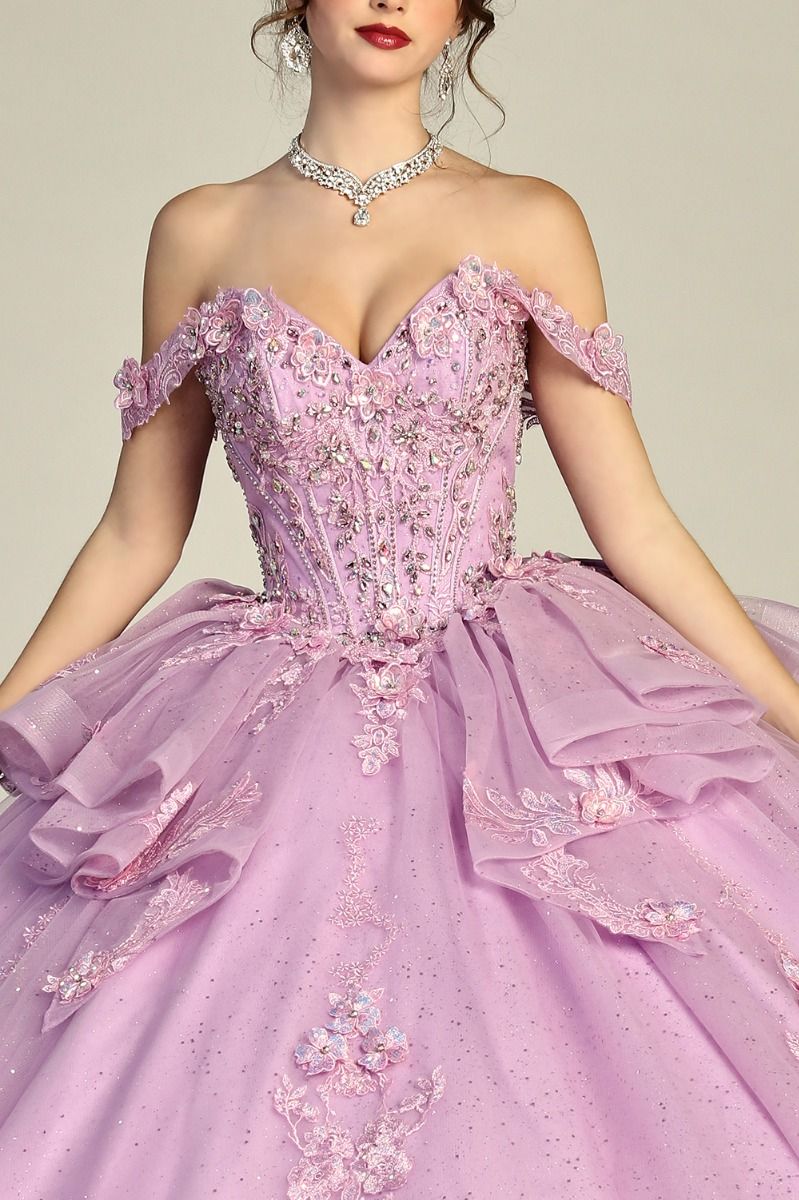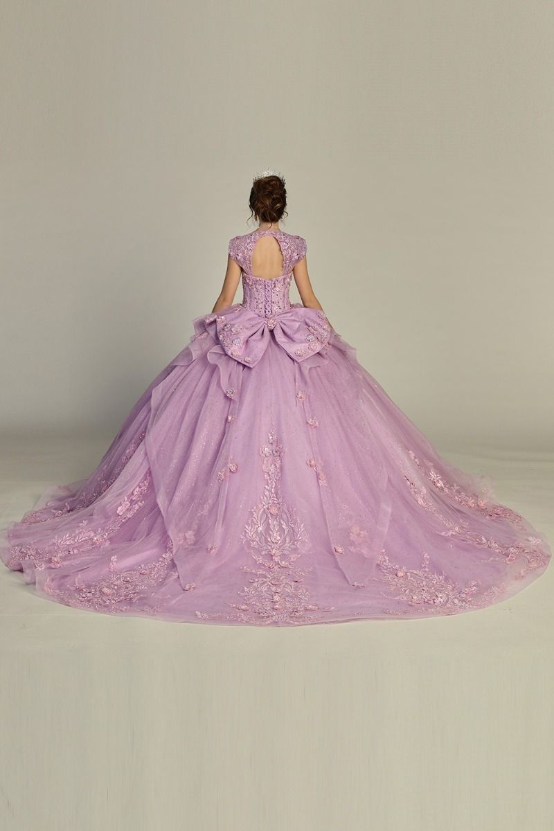 - Cap Sleeve Sweetheart Neck 3D Applique Quince Ball Gown
