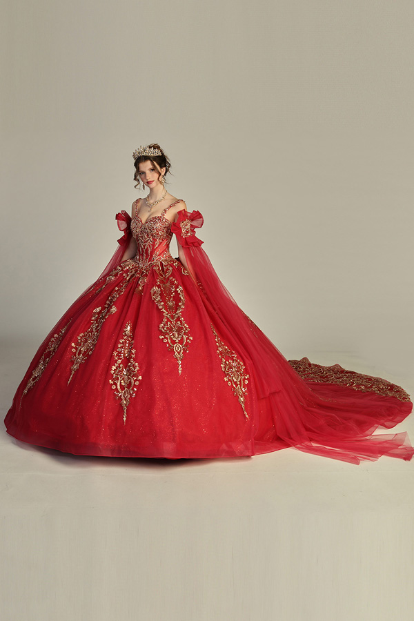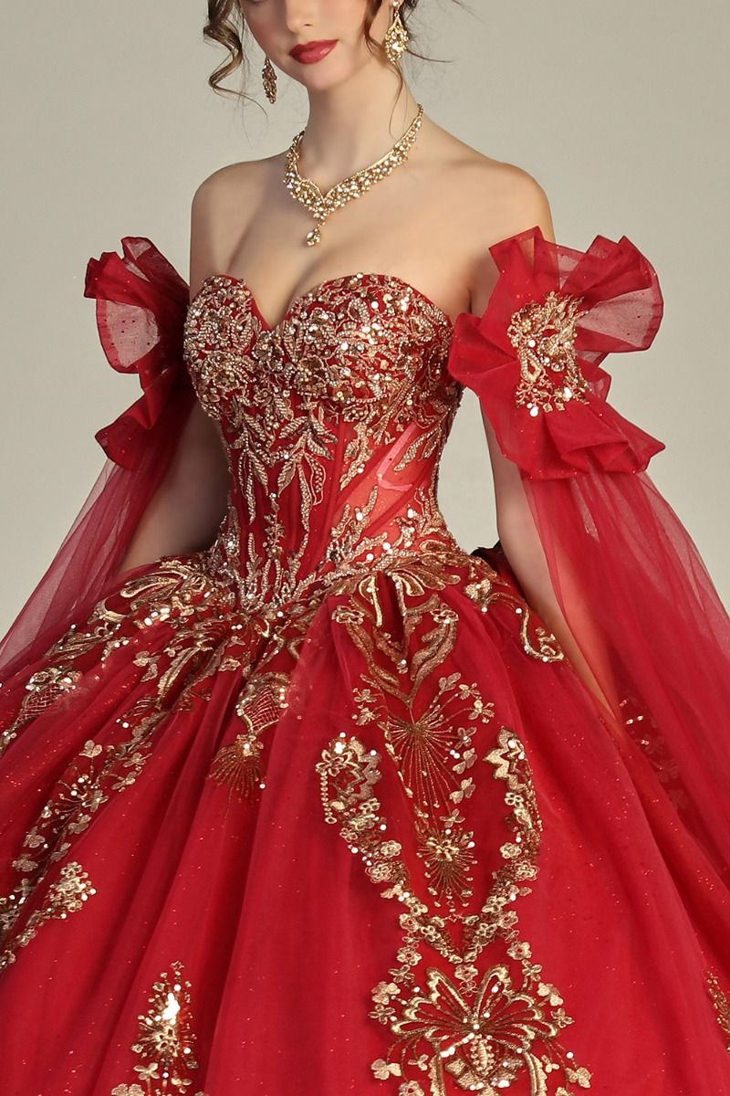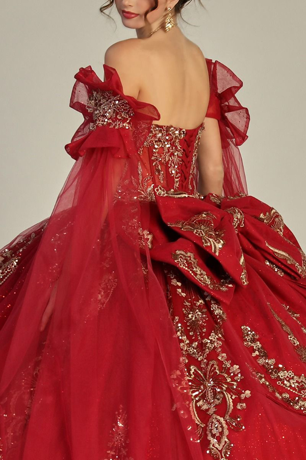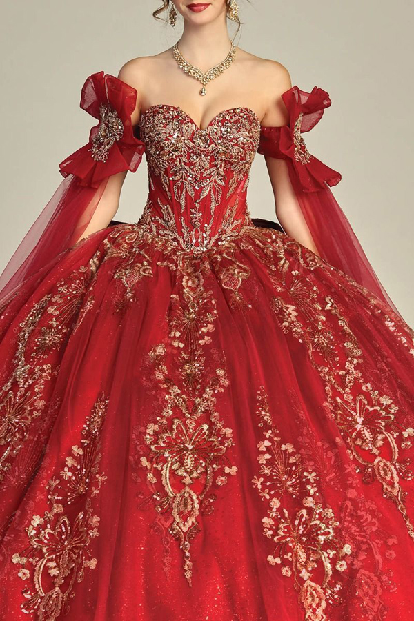 Off Shoulder Cape Sleeve Sweetheart Neckline Quinceanera Ball Gown