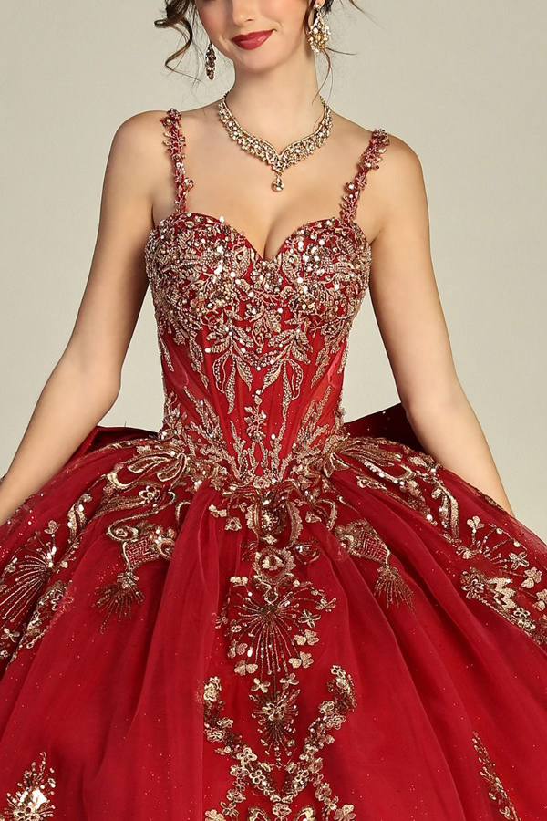 Features: Open Back, Lace-Up Back, Bow, Metallic Embroidery/Sequin/Bead Applique, Cathedral Train.