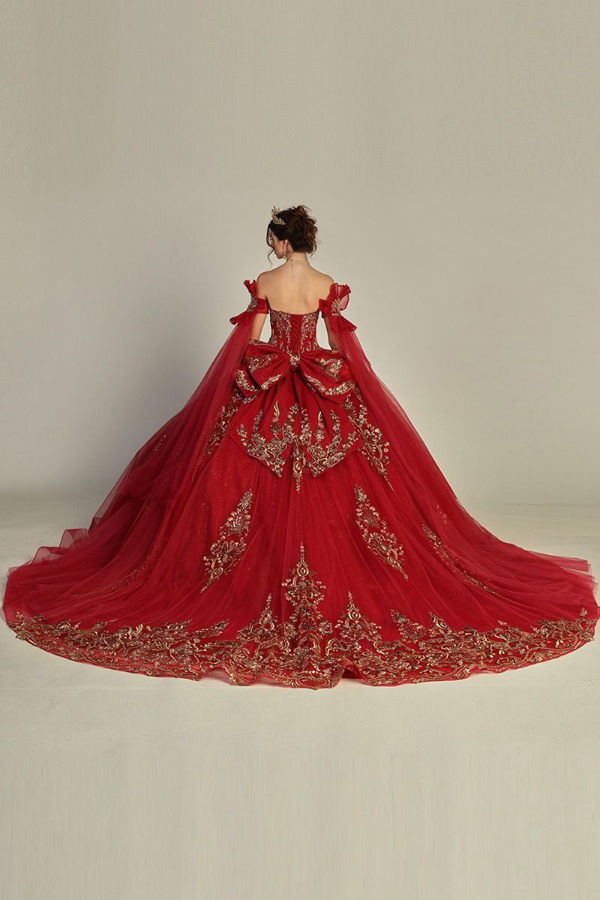 - Off Shoulder Cape Sleeve Sweetheart Ball Gown