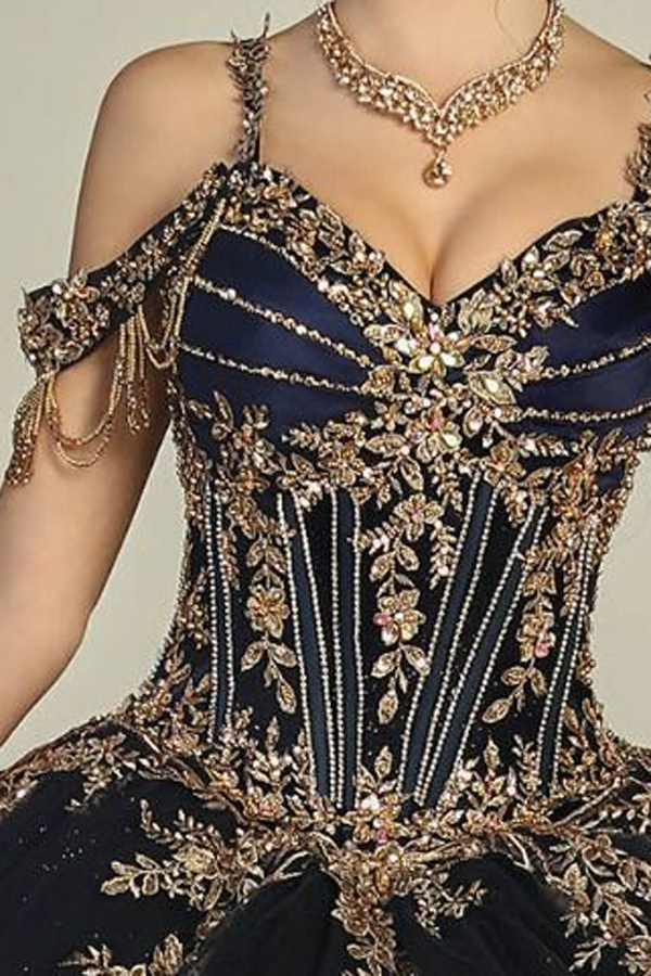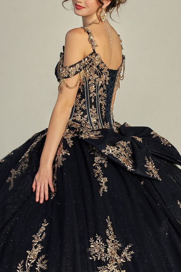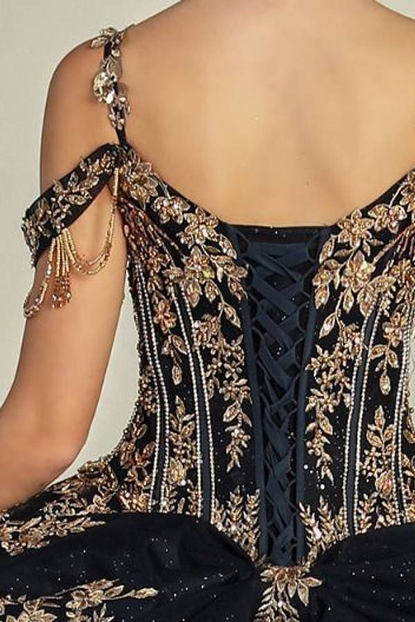 Features: Metallic Embroidery/Bead Works/Jewel Detail, Glitter Sprinkle, Open Back, Lace-Up Fit.