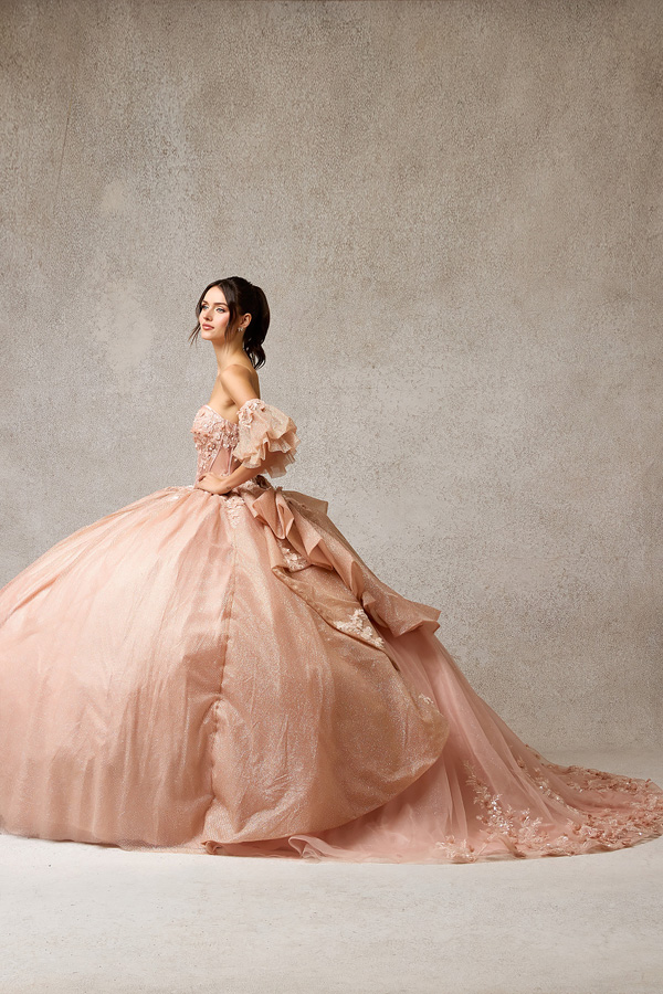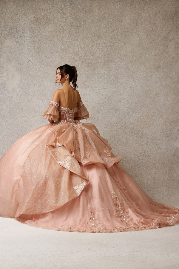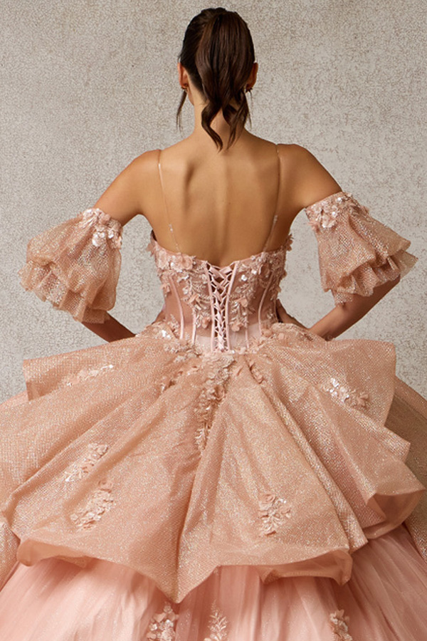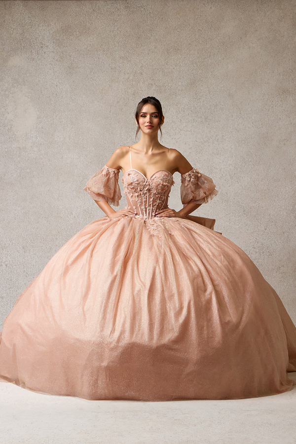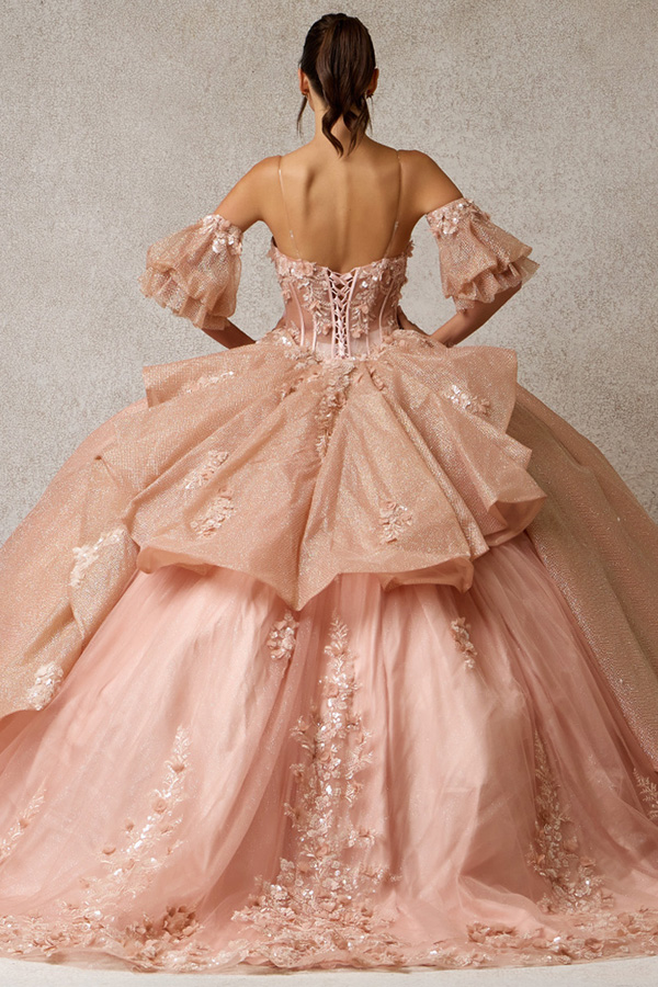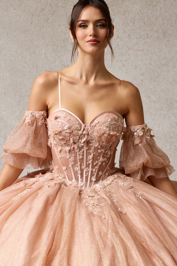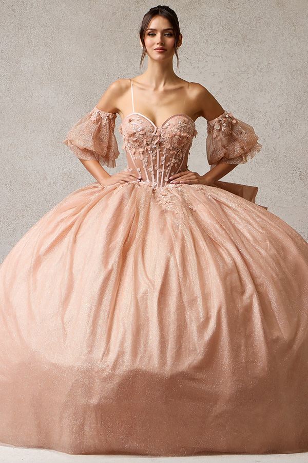 - Glittering Quinceanera Gown w/ Detachable Puff Sleeves