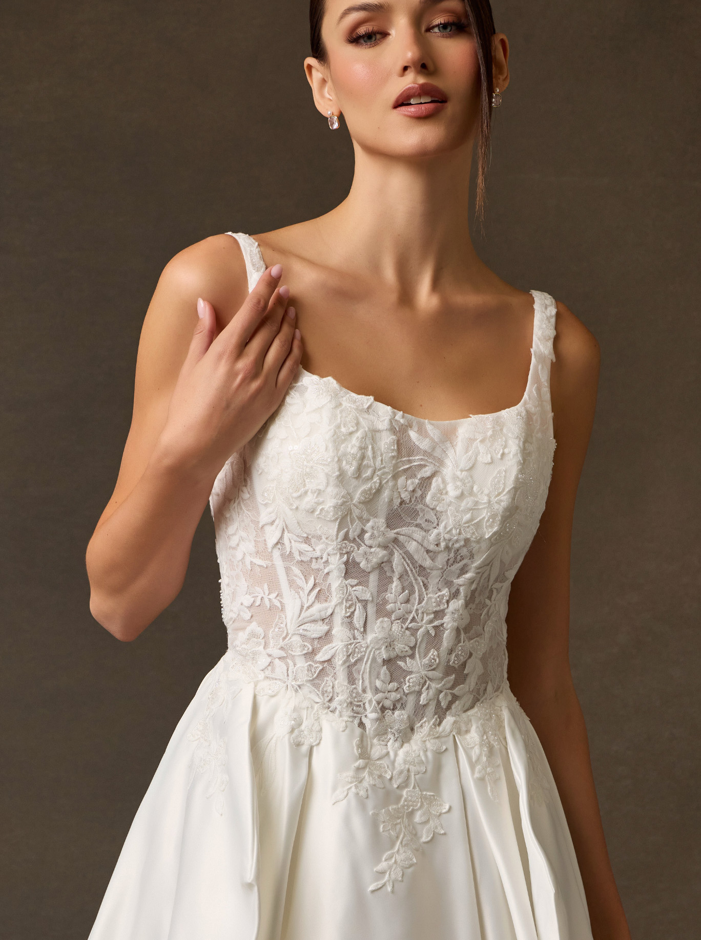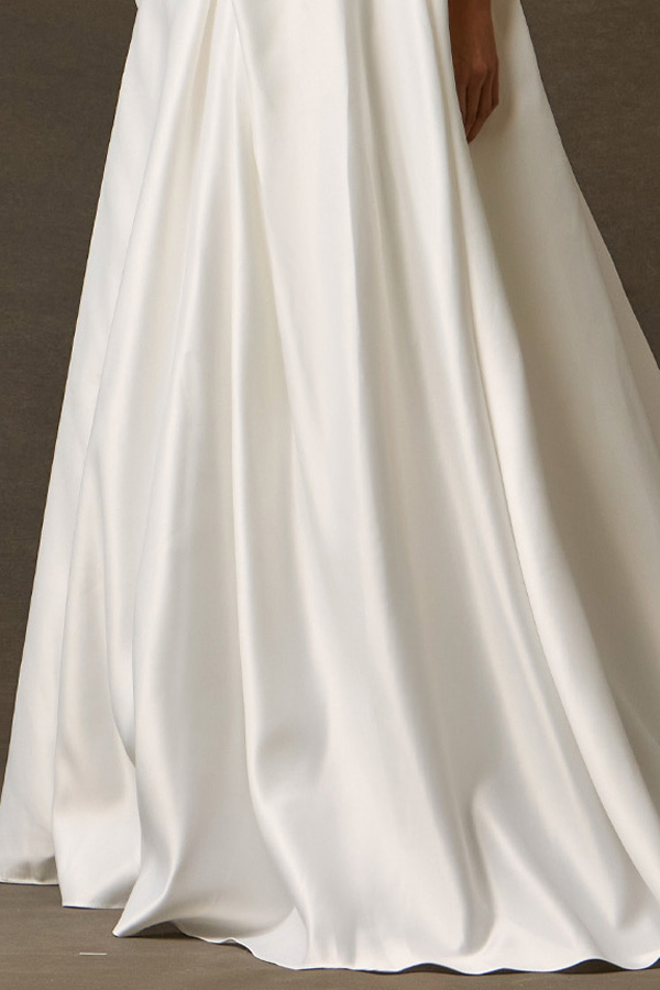 A breathtaking fusion of traditional romance and contemporary structure, Style SPW6916 is designed for the bride who envisions a regal silhouette with a modern, intimate edge. This gown centers on a meticulously detailed bodice contrasted by the clean, high-luster finish of a grand A-line skirt.