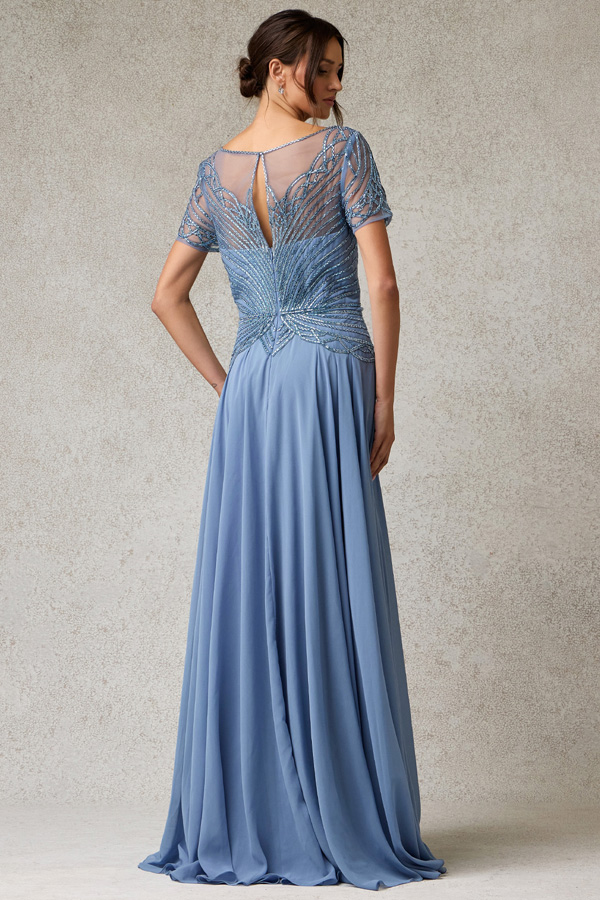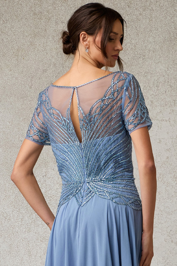 Bead/Crystal/Hotfix/Sequin Design Embellishment, Chiffon Skirt, Sweep Length Mother of the Bride/Groom Dress.