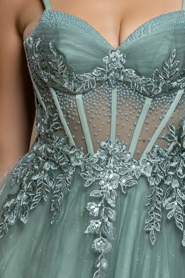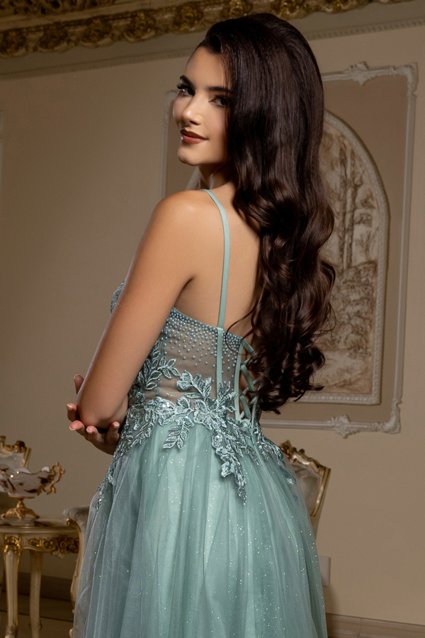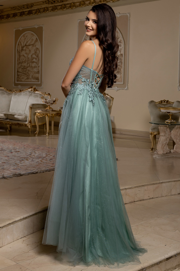 Color: SAGE Size:- Sleeveless Embroidery Rhinestone A Line Prom Dress