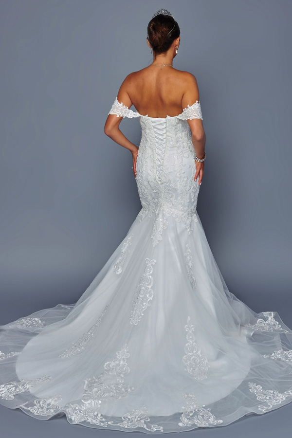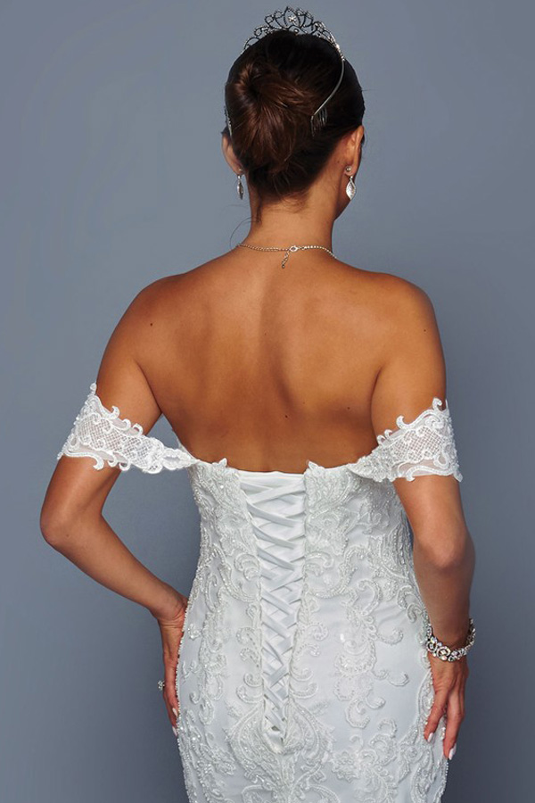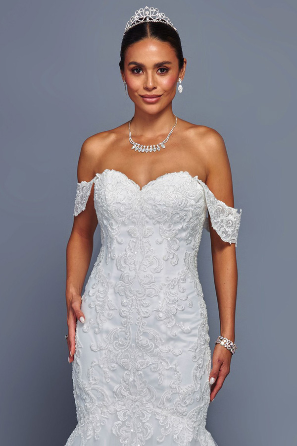 Off the Shoulder Sweetheart Neckline Mermaid Wedding Gown.