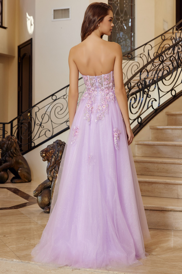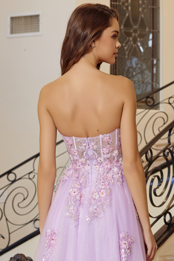 - Strapless Plunging V Embroidery Top A Line Dress
