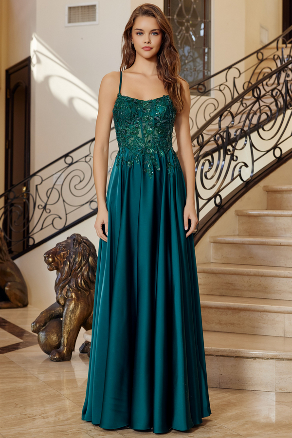 - Sleeveless Spaghetti Straps A Line Satain Dress