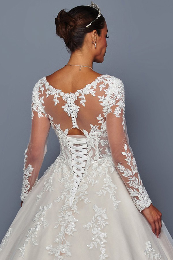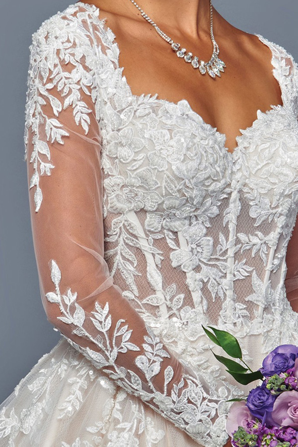 Sheer Long Sleeve Sweetheart A Line Chapel Bridal Gown.