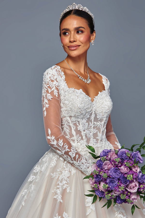 - Sheer Long Sleeve Sweetheart A Line Chapel Bridal Gown