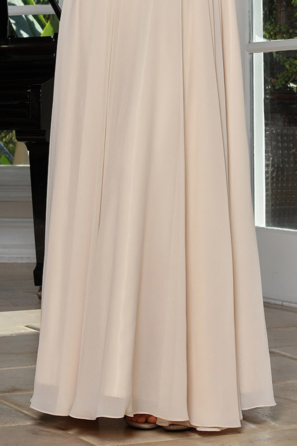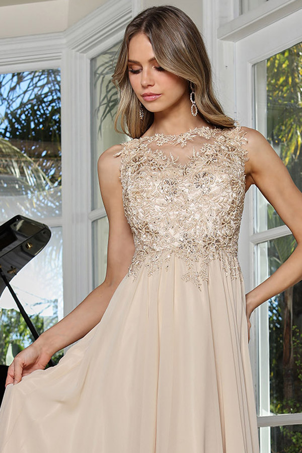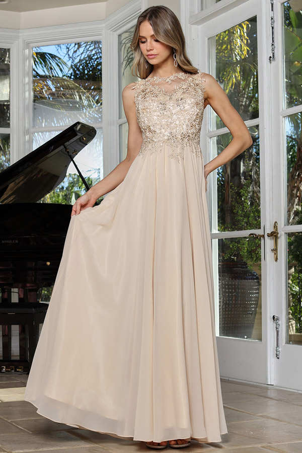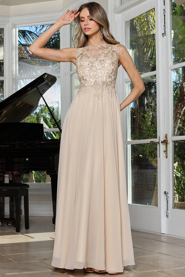Color: CHAMPAGNE Size:- Sleeveless Bateau Neck Embellished Top Chiffon MoB Gown