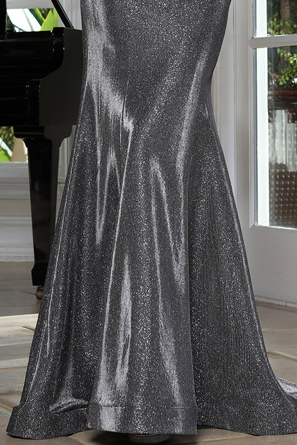 Color: DARK SILVER Size:- Cap Sleeve Embroidered Glitter Mesh MoB Gown