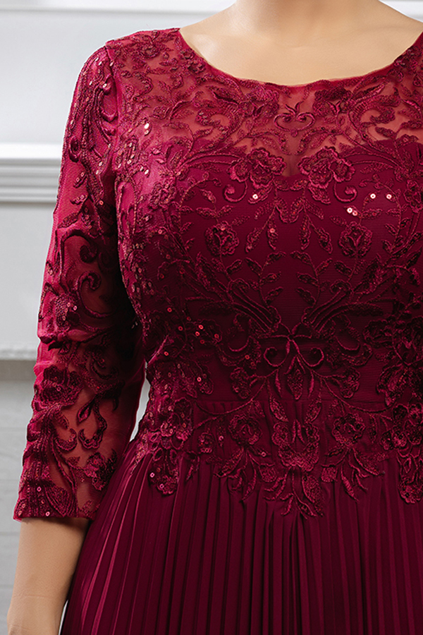 Features: Embroidery/Sequin Design, Accordion Pleat Chiffon Skirt, High Back, Zipper