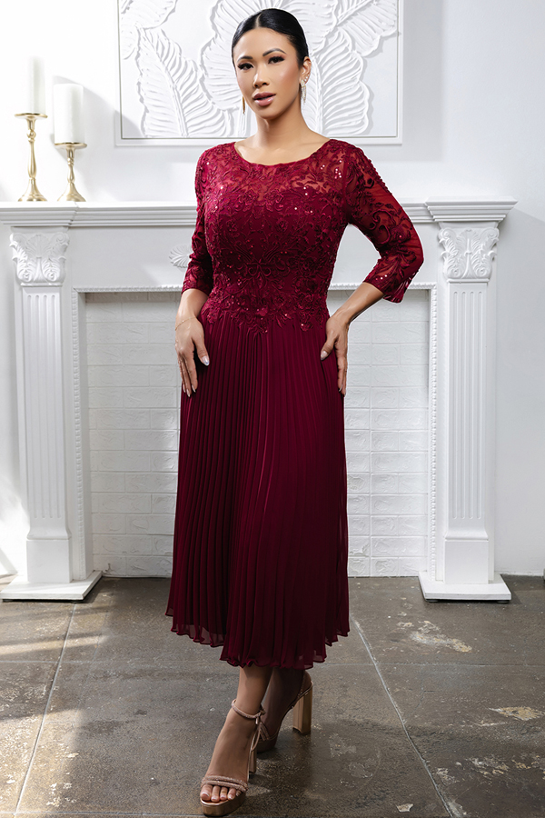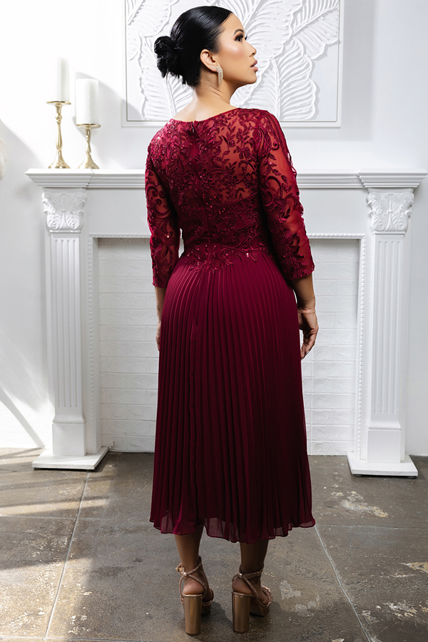 Sheer 3 Quarter Sleeve Bateau Neckline Midi Mama/Mother of the Bride Dress