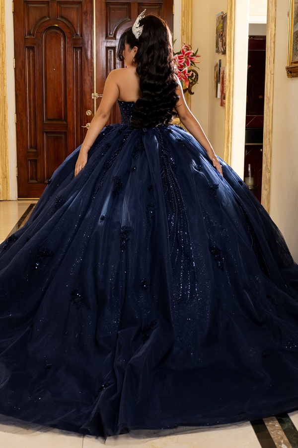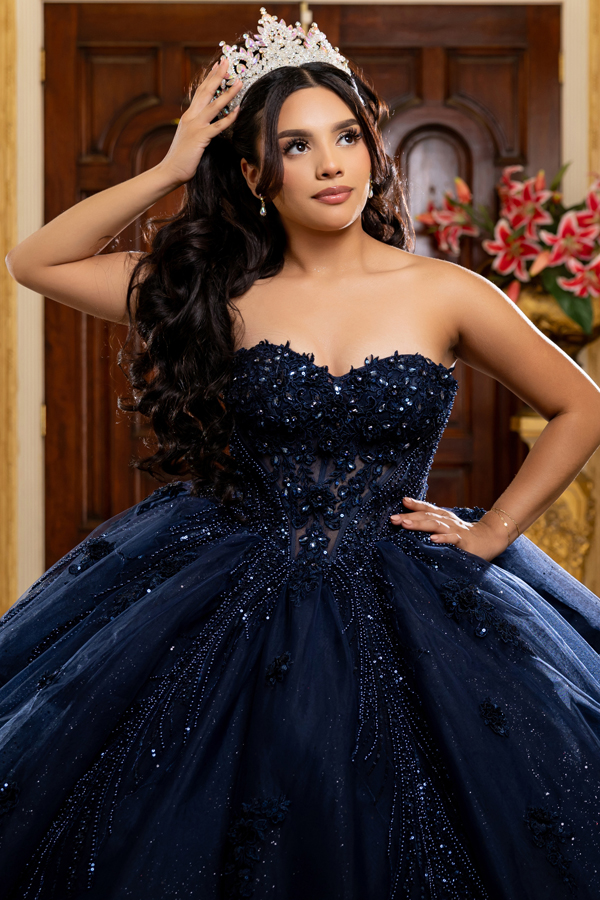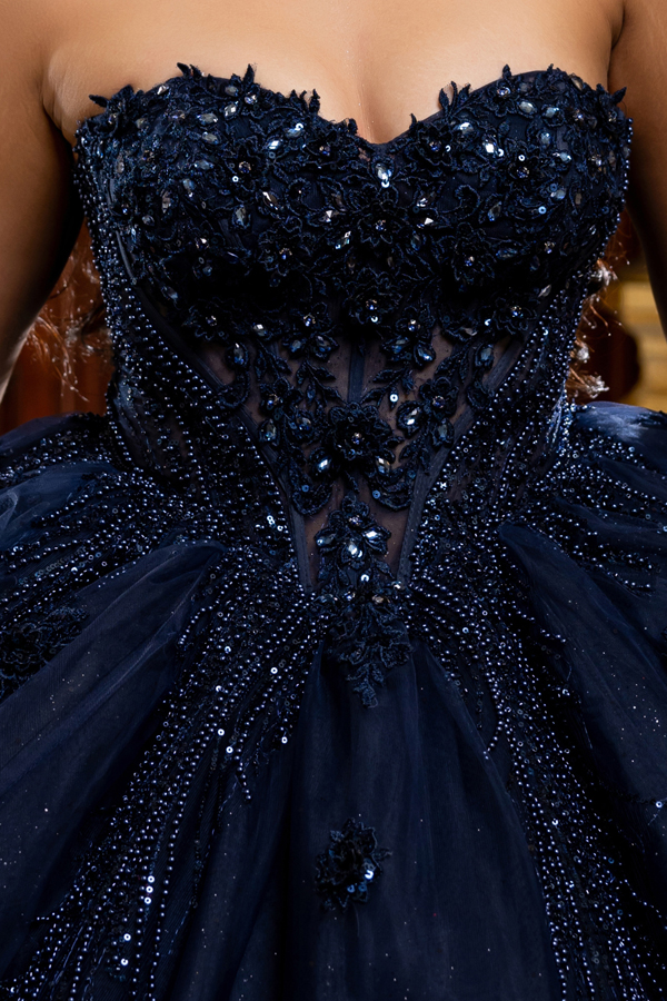 Color: NAVY Size:- Sweetheart Jewel/Pearl Embellished Ball Gown