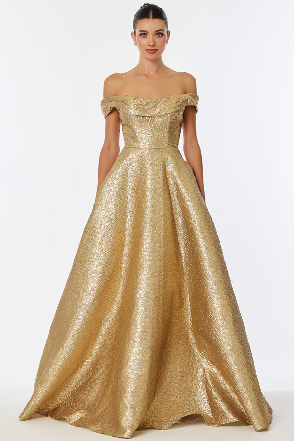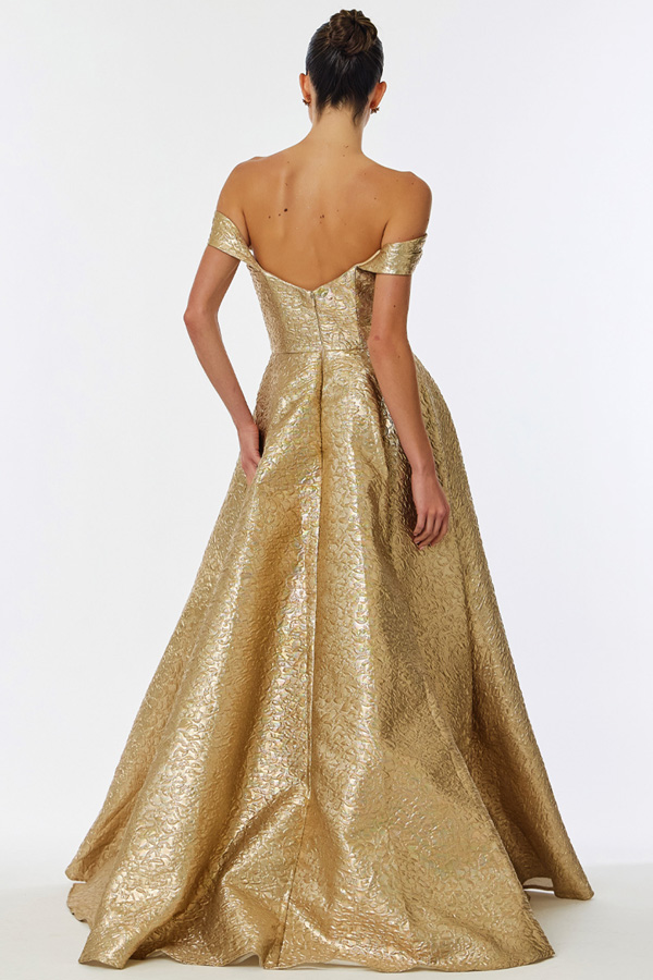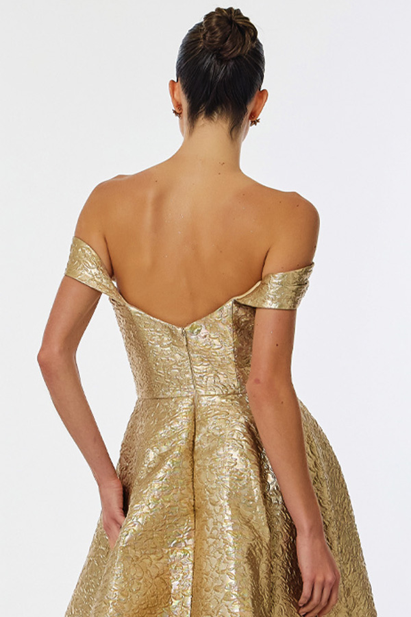 Off-the-Shoulder Straight Neckline Jacquard A-Line Dress
