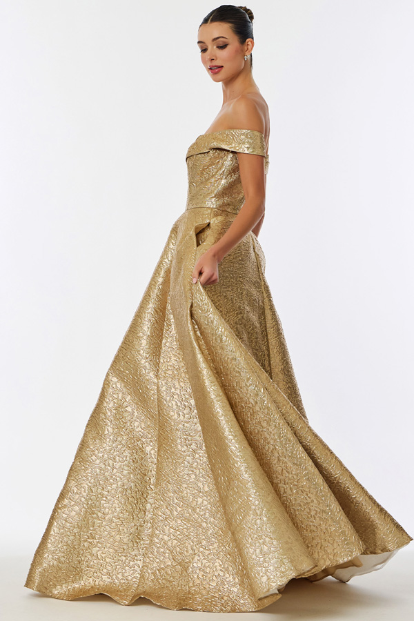 - Off the Shoulder Straight Neckline Jacquard Dress