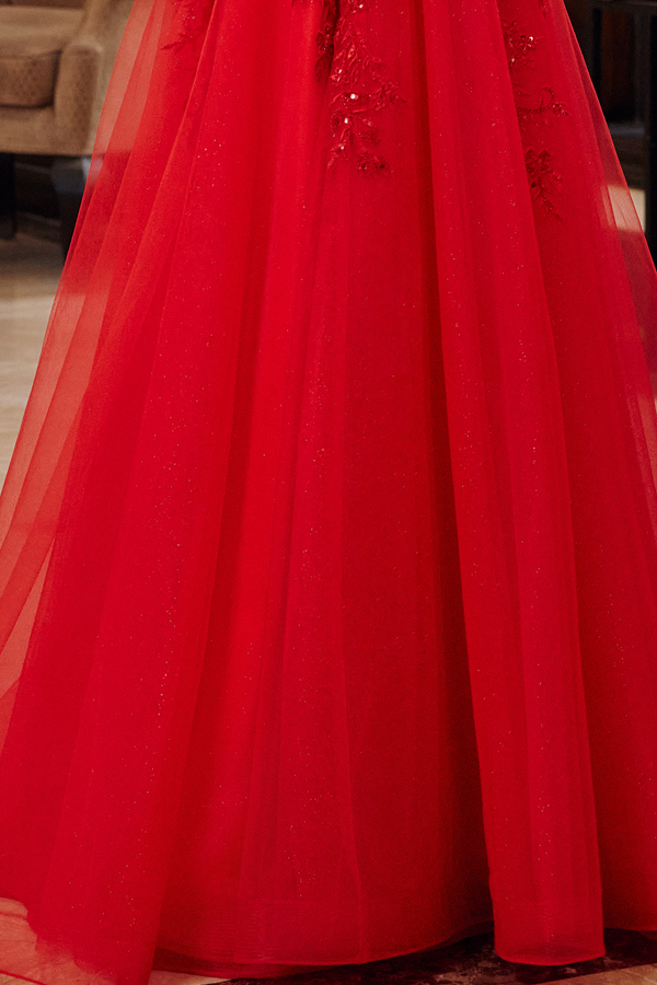 Features: Embroidery/Iridescent Sequin Applique, Illusion Design Top, Floor Length.