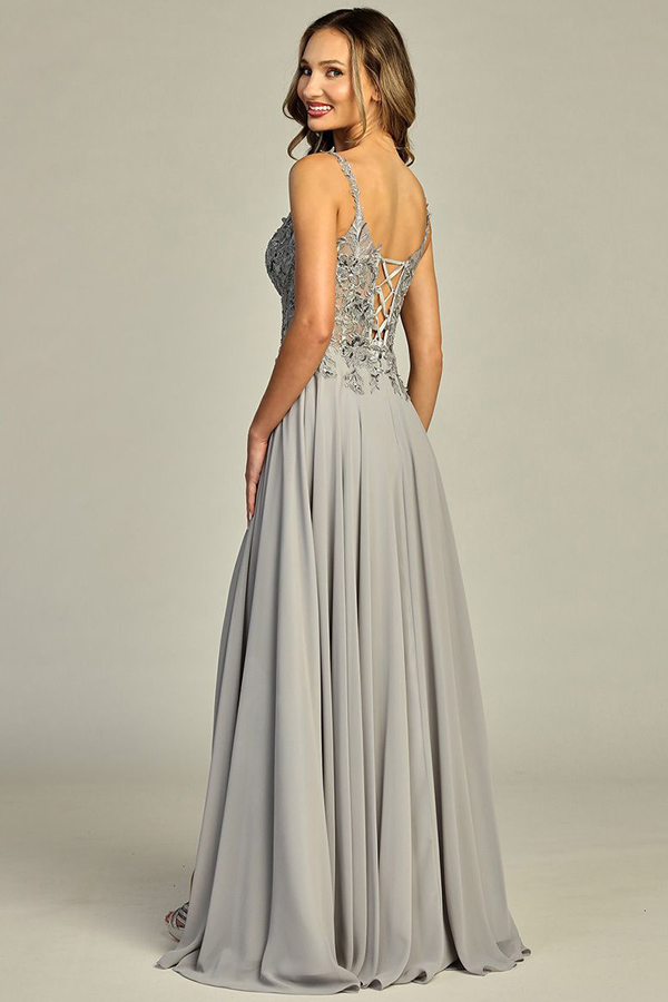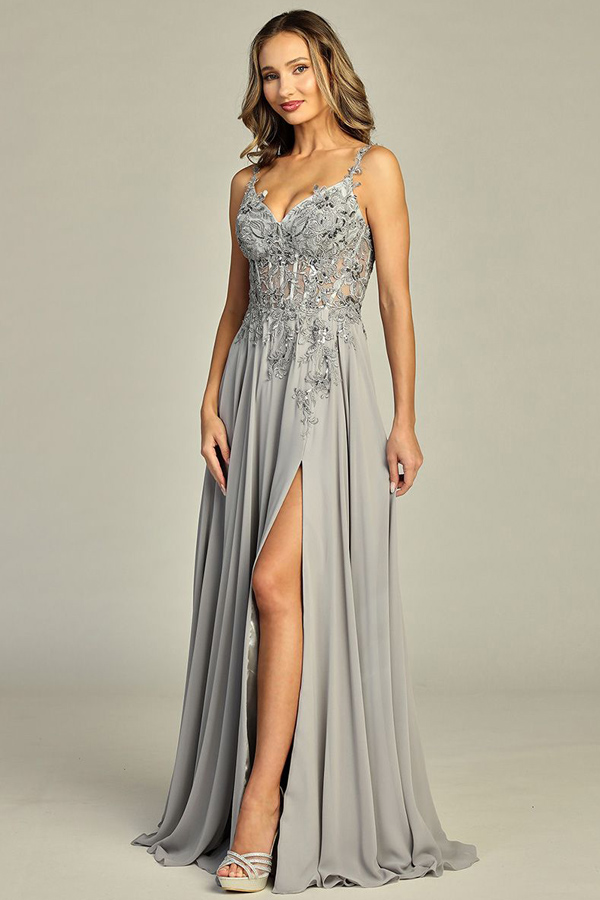 Color: SILVER Size:- Sleeveless Embellished Top A Line Chiffon Prom Dress