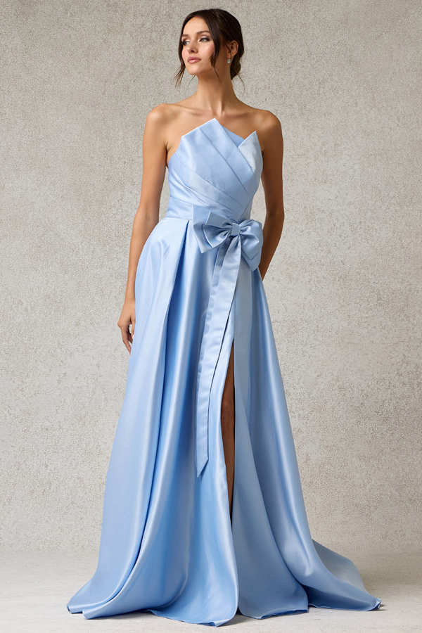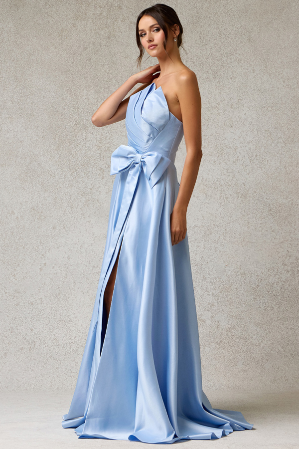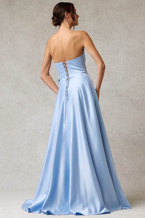 Color: ICE BLUE Size:- Strapless Origamy Fold Top A Line Dress