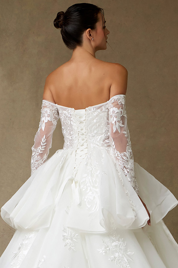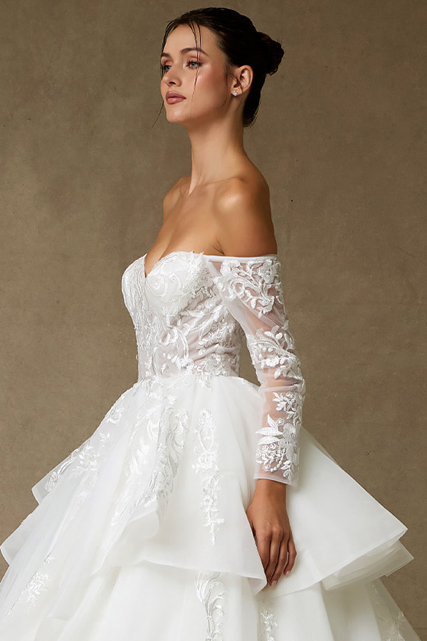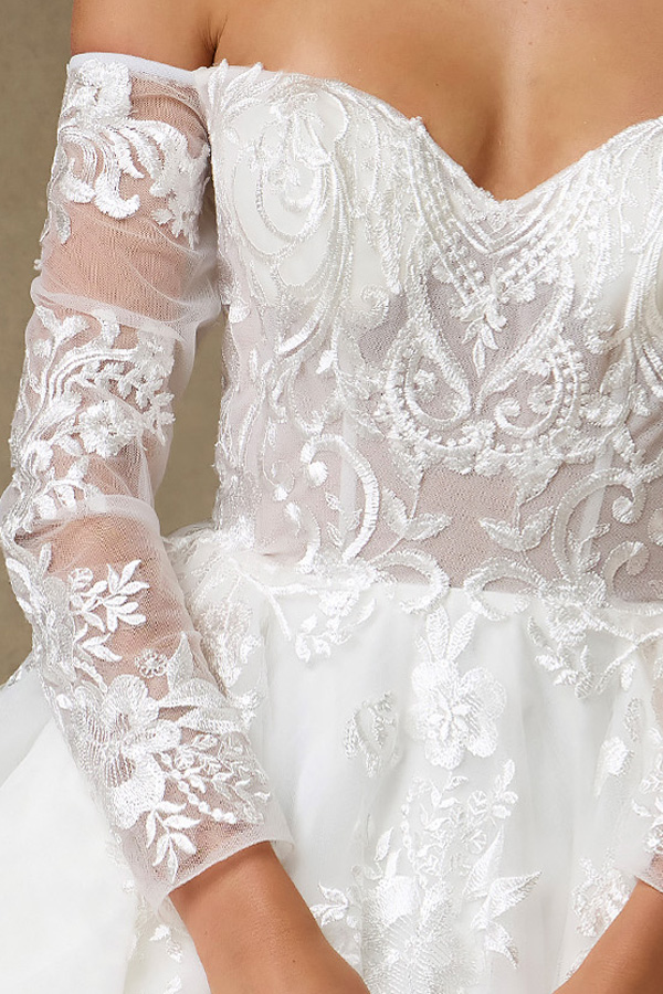 Strapless Off-the-Shoulder Sheer Long Sleeve A Line Wedding Dress